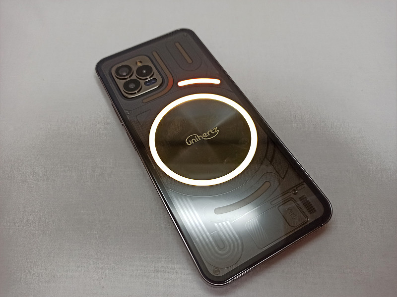 Unihertz Lunaは背面パネルも透明なガラス製となっており、その名前のLuna(月)の動きを模したとされる6色に点灯可能なLEDをガラスの下に配置し、カラフルに光って通知などを確認できるデザイン性重視の4G対応のミッドレンジモデルとなります。