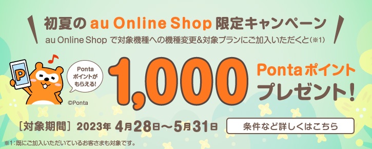 <概要>(1)au Online Shopにおいて対象の5Gスマホに機種変更するとPontaポイントで1,000ポイントを還元します。
