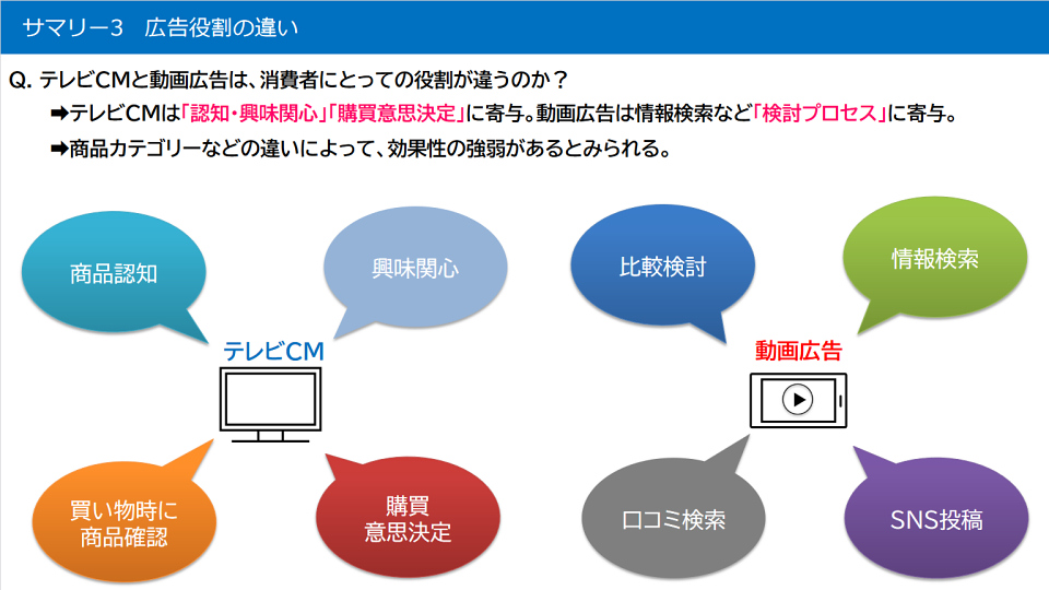 日本民間放送連盟研究所が2022年7月に公開した「テレビの広告効果に関する研究」第2回調査結果でも、テレビCMの広告認知効率(CMを見て商品を購入したと考えられる割合)は42.9%、Youtubeの動画広告が20.1%であったことを考えると、30%前後という数字はかなり高い数字だと考えて良いと思います。