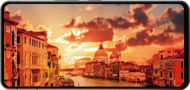 さらに映画館で使われているHDR映像技術「Dolby Vision」と立体音響技術「Dolby Atmos」にも対応しているため、大画面による臨場感あふれる迫力の映像とサウンドの世界にじっくりと没入可能です。パンチホール部分には約1260万画素CMOS/広角レンズ(F2.3、焦点距離27mm相当)のフロントカメラが内蔵され、マスクを付けたままでも使える顔認証に対応するほか、生体認証として3D超音波指紋センサー「Qualcomm 3D Sonic Max」も搭載しています。