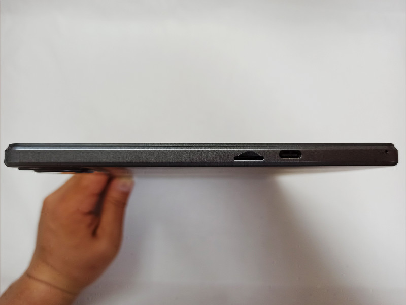 また左側面にはmicroSD(TF)カードスロットとUSB Type-C端子、動画撮影およびチャットや音声認識アプリなどで利用するマイクがあります。右側面には特に何もありません。