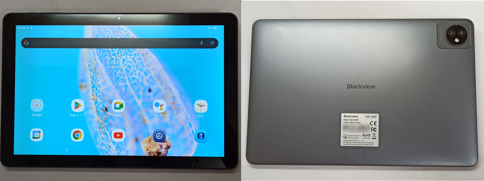 リアカメラはこの手のタブレットとしては珍しいデュアルカメラのように見えますが、デバイス情報を取得したところではカメラユニットはフロントとリアに1つずつしか確認できず、深度センサーかあるいは非常に安価な製品なのでデザイン的なダミーの可能性もありそうです。