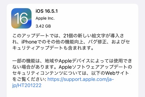 Appleは21日(現地時間)、同社が販売するスマートフォン(スマホ)「iPhone」シリーズ向けプラットフォーム「iOS」とタブレット「iPad」シリーズ向けプラットフォーム「iPadOS」の最新バージョン「iOS 16.5.1(20F75)」および「iPadOS 16.5.1(20F75)」を提供開始したとお知らせしています。