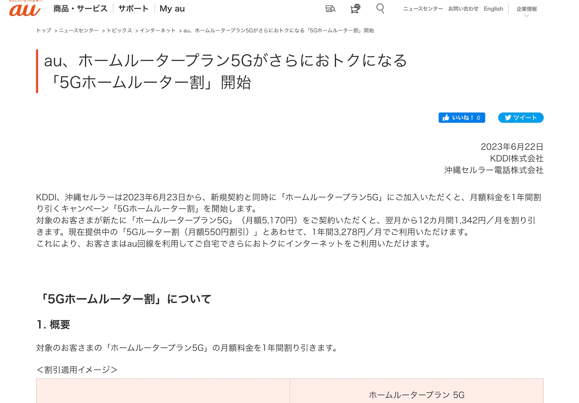 | auにてキャンペーン「5Gホームルーター割」がスタート! |