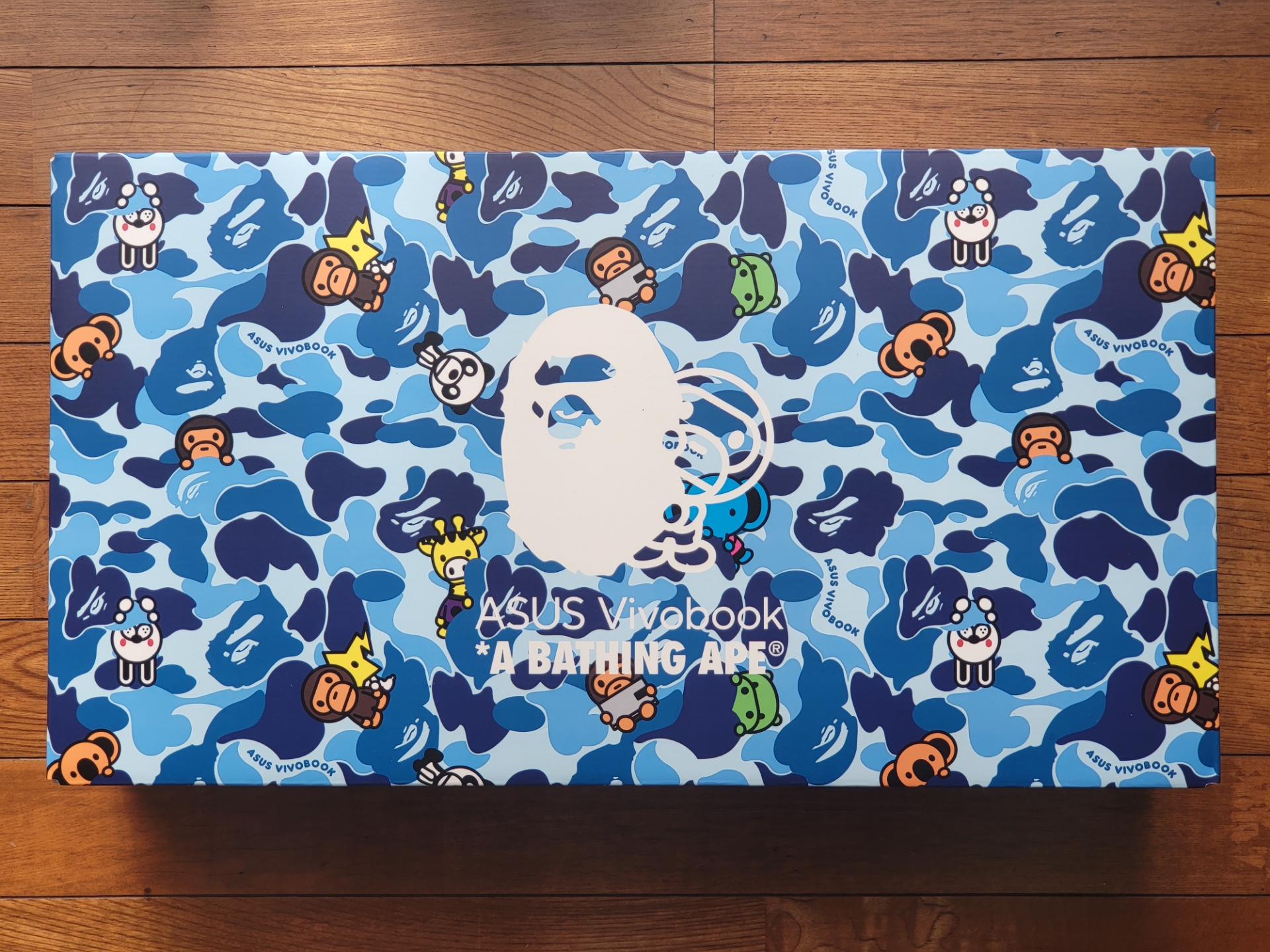 Vivobook BAPE EditionはストリートファッションブランドのA BATHING APEとのコラボモデルです。A BATHING APEは1990年代から裏原宿にて人気が高くなったブランドで、正式名は「A BATHING APE IN LUKEWARM WATER(ぬるま湯に浸かった猿」の意)」であり、略称の「BAPE(ベイプ)」は製品デザインに用いられています。