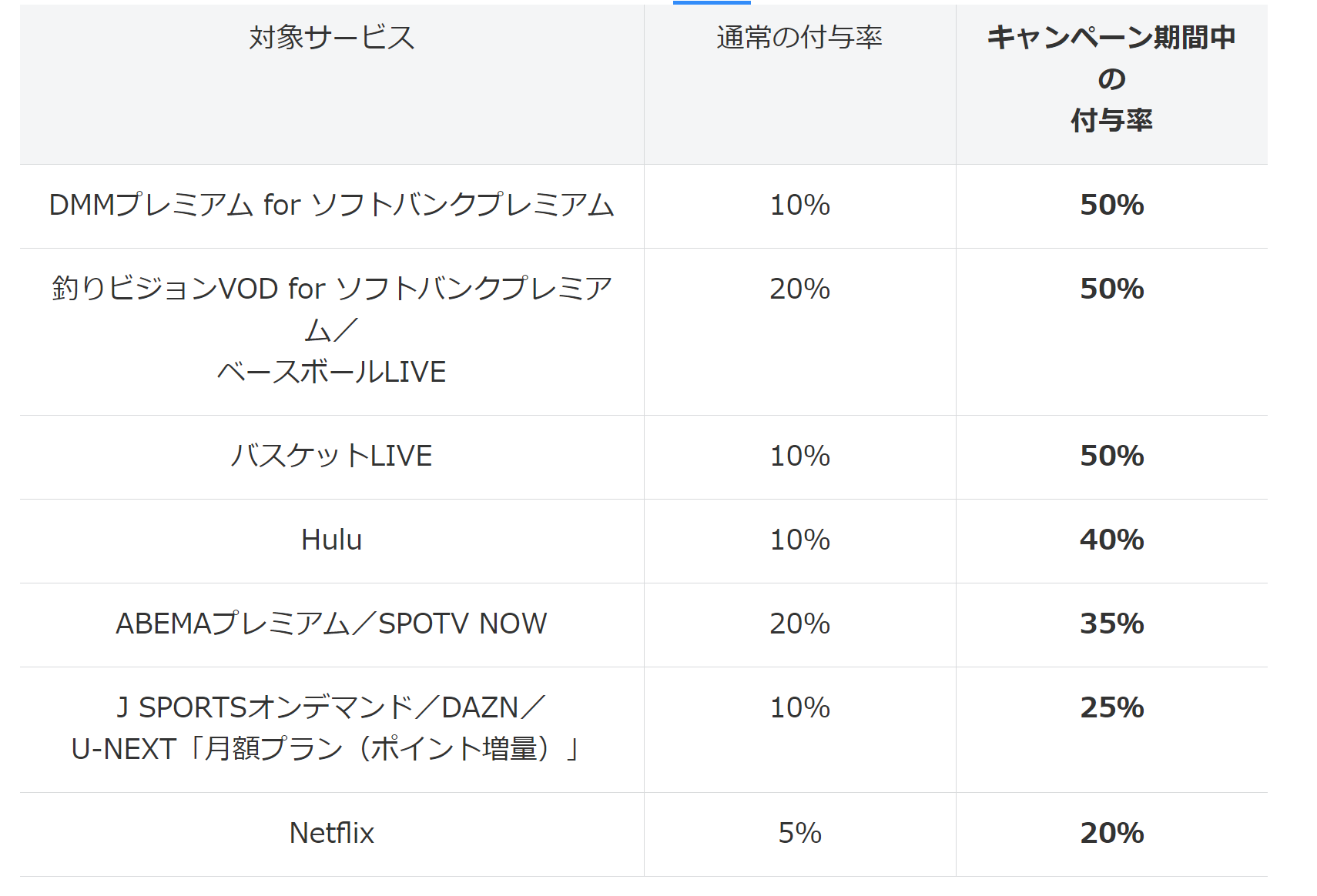 ○ソフトバンクプレミアム「エンタメ特典」でポイント付与率が最大50%