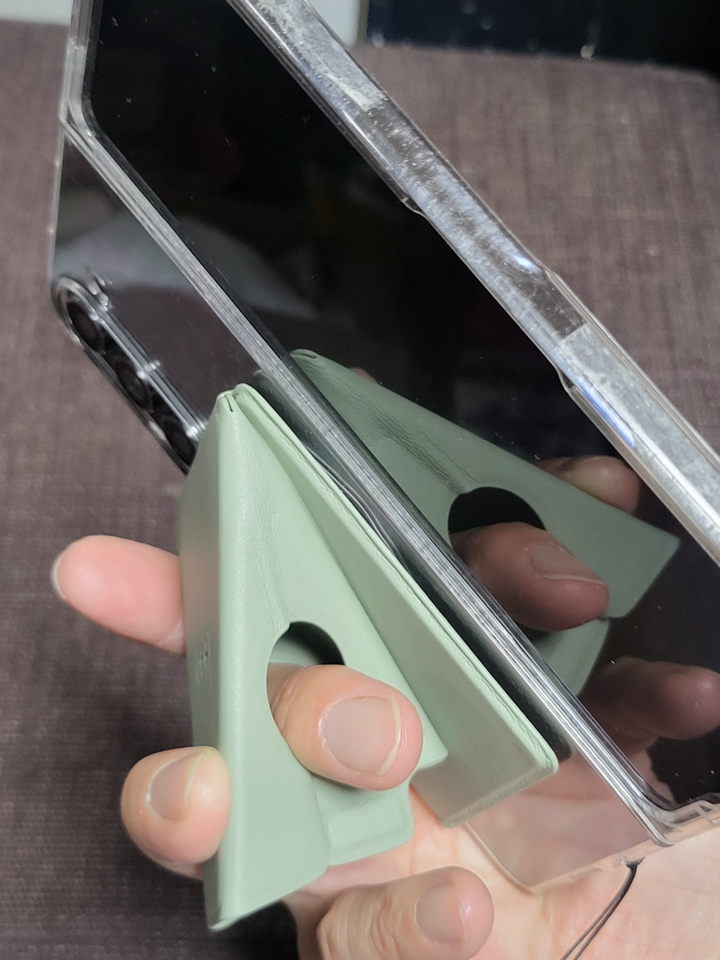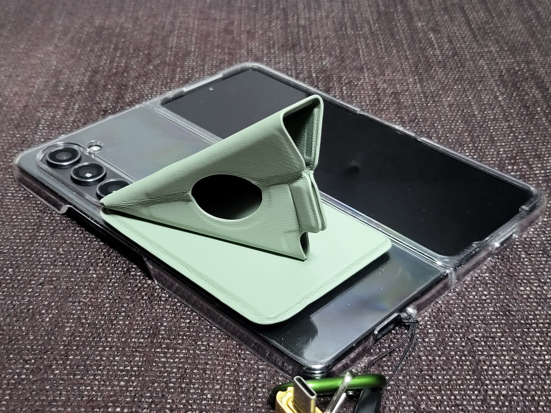 筆者は以前に紹介しましたが、今秋に最新フォルダブルスマホ「Galaxy Z Fold5」を新調しており、beak magをGalaxy Z Fold5でも使ってみましたが、開いた状態でもスタンドとして利用できます。ホールドも安定していました。