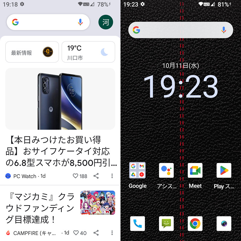 ホーム画面はGoogle Discoverと通常のホーム画面を合わせた全2面で、カーソルキーを使ってアプリやウィジェットを選択して実行させることができます。