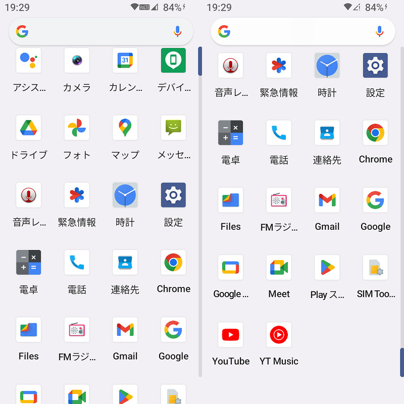プリインストールアプリはGoogle検索やGmailなどのGoogle製のGMS(GoogleMobileService)アプリ以外にはFMラジオ程度しかアプリは一切プリセットされておらず、必要なアプリは全てユーザー自身でインストールしていくことになります。