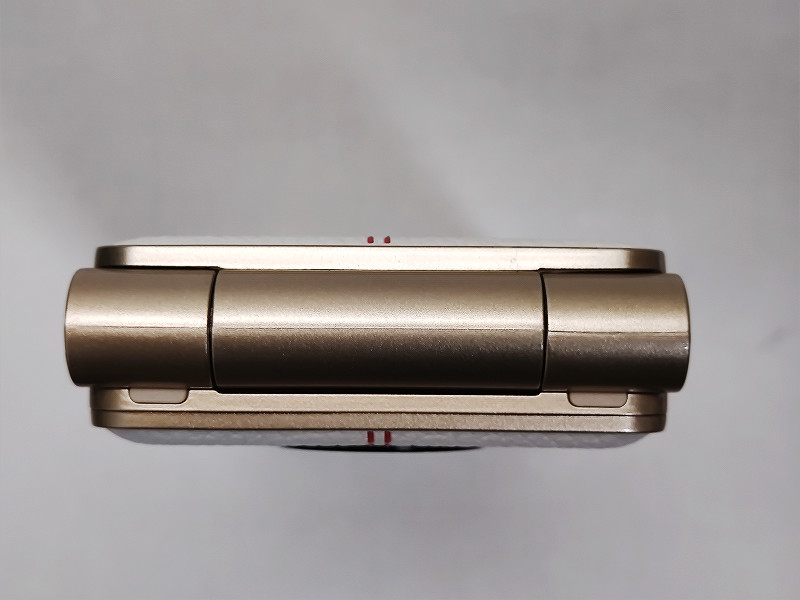 下側には折り畳みケータイのアイデンティティとも言えるテンキーと3ボタンナビゲーションキー(バック・ホーム・アプリ履歴)、アプリや機能などを登録可能なマルチボタンキー(I・II・III・IV)、カーソルキー、通話用マイクが配置されています。なお、本機の操作系はデフォルトでは3ボタンナビゲーションに設定されていますが、ジェスチャーナビゲーションへの変更も可能でジェスチャーナビゲーション設定中でもハードキーによる3ボタンナビ操作が可能なのは覚えておいて損はないでしょう。