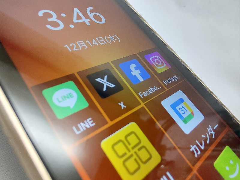 ・「スマホ」なので、ケータイ型でもSNSアプリが一通り利用できる。OSにAndroidを採用しつつもGMS(Google Mobole Service)アプリやGooglePlayストアの利用できないAndroidケータイ(いわゆるガラホ)とは異なり、Androidスマホにテンキーが搭載された端末である本機は一通りのAndroidアプリのインストールが可能で、ほとんどのSNSサービスをそのまま利用することができます。