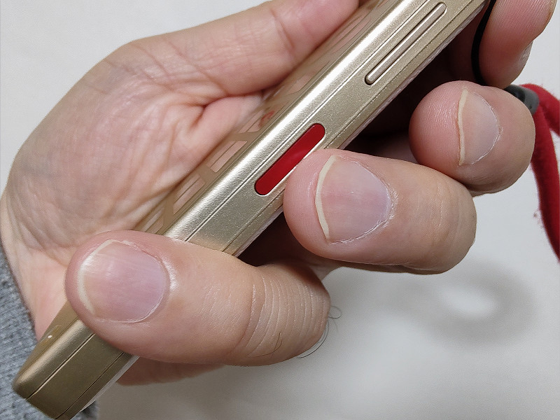 RETRO IIに折りたたみケータイ型ながら、スマートフォンでもあるため、しっかりと指紋センサーがあり非常に感度が良いのですが、もったいないのはその位置で、右側面側の中央付近に配置されています。