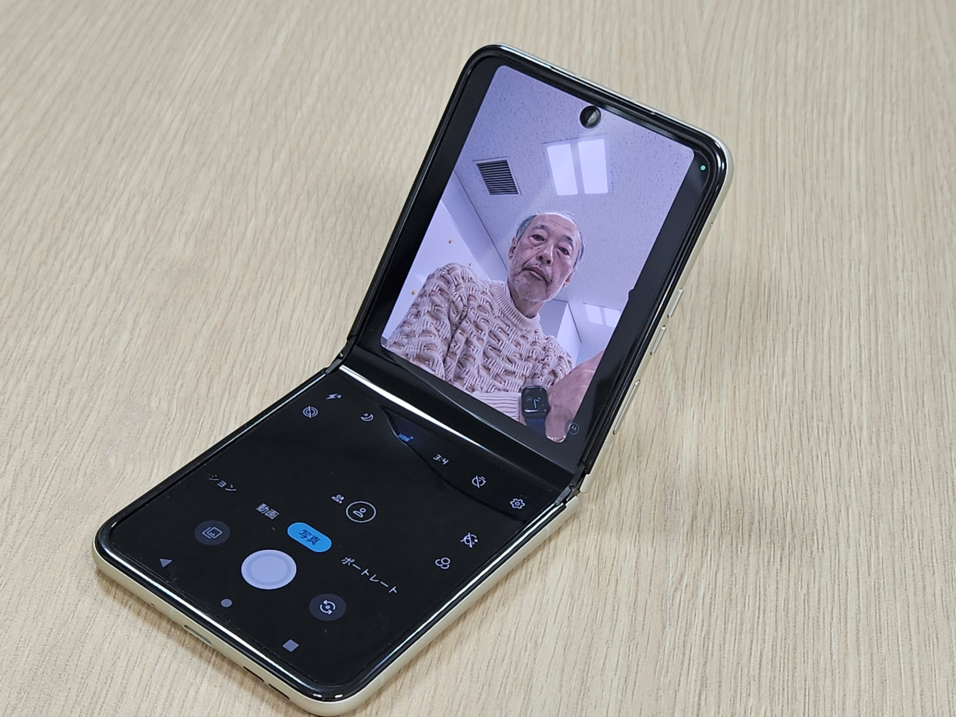 一方、カメラに関してはアウトカメラが約6,400万画素 F1.7(広角)と約1300万画素 F2.2(超広角)の二眼仕様、インカメラが約3200万画素 F2.4となっています。夜間撮影でも綺麗に撮影が可能です。ポートレートモードでは、背景を綺麗にぼかすことができます。また自撮りの際には、フレックスビュースタイルで、デスクに置いて利用することが可能です。
