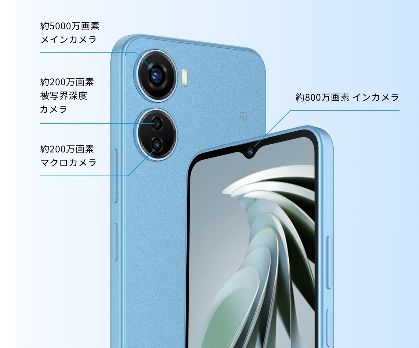 サイズは約166×76×8.6mm、質量は約194g、本体カラーはブルーおよびホワイト、ブラックの3色展開。OSはAndroid 13をプリインストールし、アプリやアイコンなどがタップしやすいように大きく表示させたり、よく使う電話番号をショートカットに設定したりできるシンプルモードに対応しているため、スマホ初心者でも安心して使えるとのこと。また新たに詐欺・迷惑電話が疑われる着信があると「この通話の録音を開始しました。」と警告がされ通話を録音することが可能となっています。