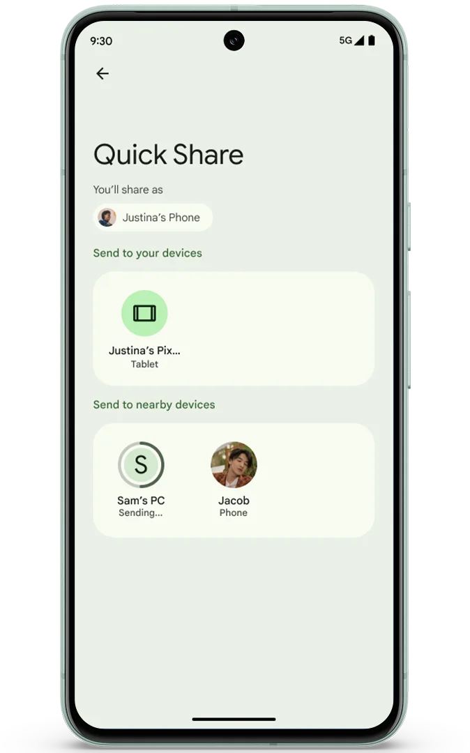 今月初めに機能の1つに対するアップデートを発表しました。それはAndroidにてこれまで「ニアバイシェア(Nearby Share)」として提供してきた機能がSamsung Electronicsの「Galaxy」シリーズにて提供されていた「クイック共有(Quick Share)」に統合され、AndroidだけでなくChromeOSやWindowsを含む何十億もの互換性のある製品に写真やファイル、テキストをすばやく共有できるようになります。新しいクイック共有アイコンをタップすると、オフラインであってもコンテンツを共有できる近くにある製品のリストが表示されます。プライバシーを完全に管理でき、製品を検出してファイルを送信できる人を全員、連絡先のみ、自分のデバイスなどから設定で選択できます。
