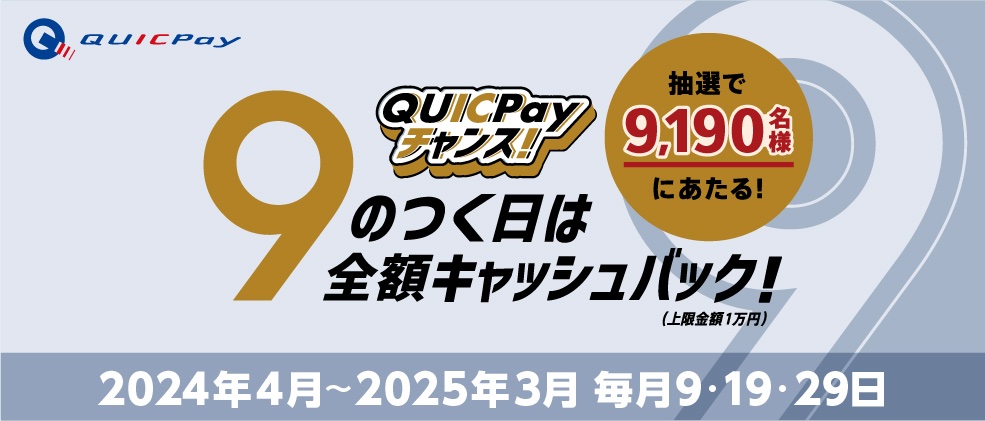 | キャンペーン「9のつく日は全額キャッシュバック!QUICPayチャンス!」が開始! |