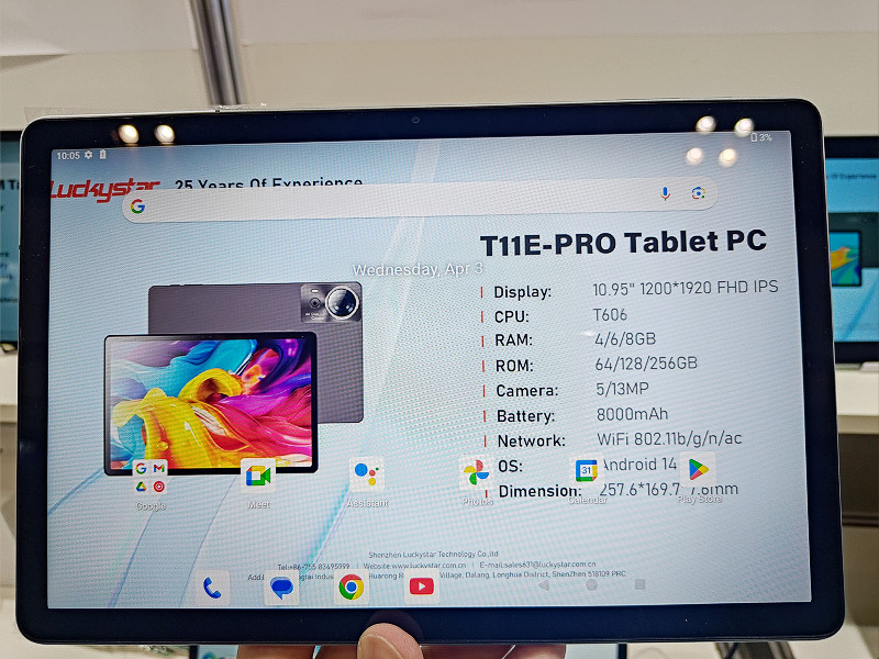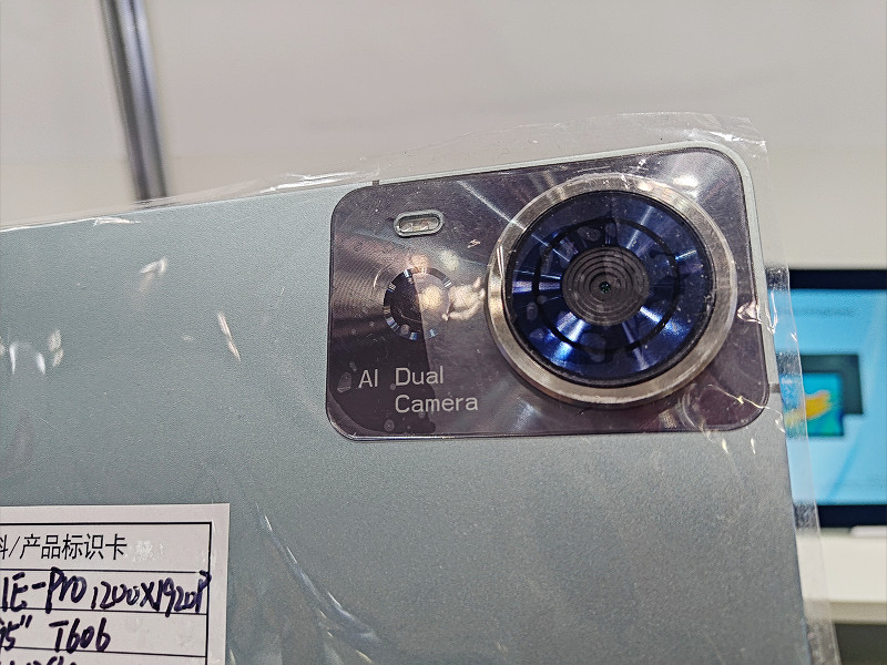 またShenzhen Lacky Starのブースでは背面のカメラ部が一際目立つAndroidタブレット「T11E-PRO」が展示されていました。デュアル仕様を謳うかなり目立つ背面カメラですが、実際のレンズなどは一般的なAndroidタブレット搭載のそれとほぼ同じ程度のもので、カメラ部分のデザインが強調されたエントリーモデルといったところでしょうか。