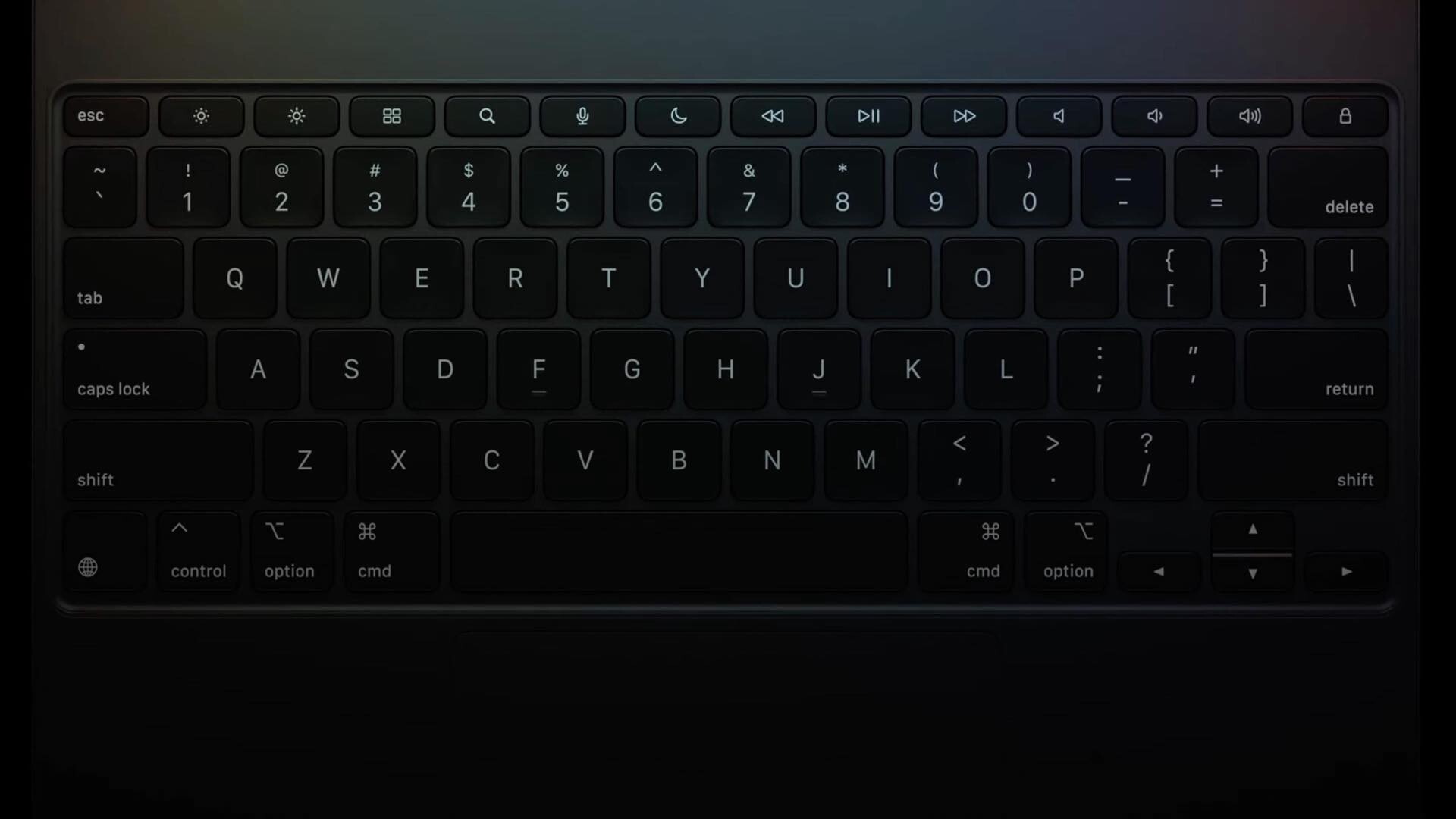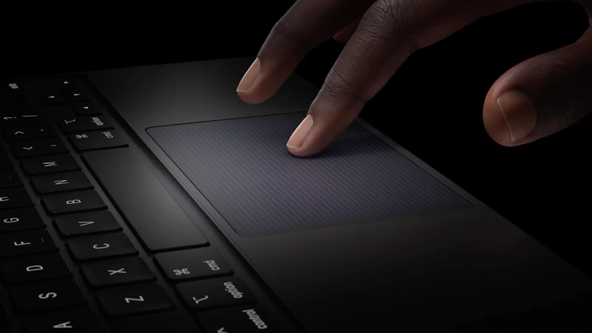 一方、Magic Keyboardはまったく新しくなり、好評な魔法のようなフローティングデザインで開くほか、ファンクションキー配列によって画面の明るさや音量の調節などの機能にアクセスでき、美しいアルミニウム製のパームレストと触覚フィードバックで反応の良さが一段と向上したより大きいトラックパッドを備えているため、全体的な体験はMacBookを使っているように感じられます。マグネットで取りつけられ、Smart ConnectorによってBluetoothを必要とせずに瞬時に電源やデータにつながります。