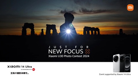 またシャオミ・ジャパンは15日、Xiaomi 14 Ultraの発表&発売を記念して若きクリエイターを応援するフォトコンテスト「Xiaomi U30 Photo Contest 2024」を開催するとお知らせしています。フォトコンテストは作品受付期間が2024年6月30日(日)までで、一次審査通過者(最大10人)にはXiaomi 14 UltraとXiaomi 14 Ultra Photography Kitをプレゼントし、さらにプロの写真家の講義が受けられる「Xiaomi Photo Academy 2024」に招待されます。