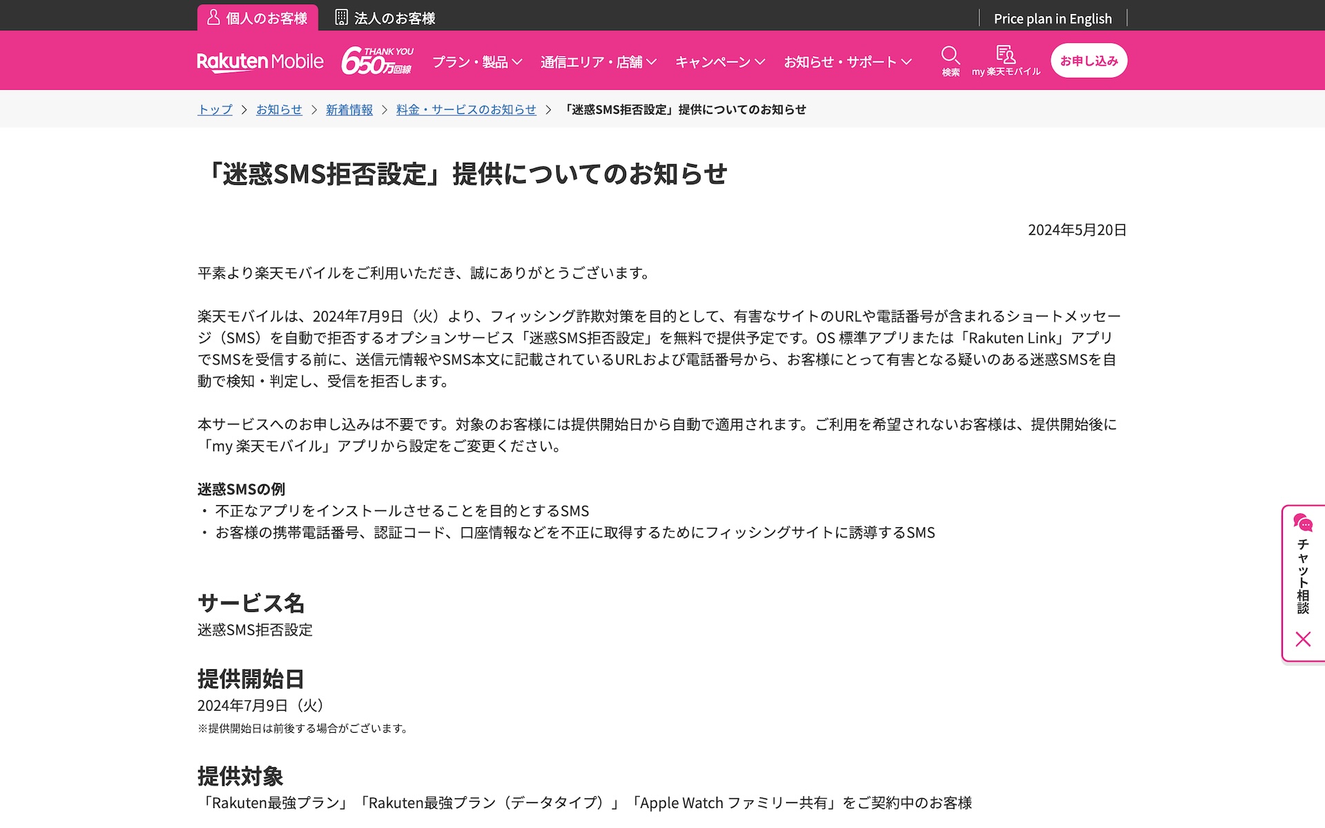 | 楽天モバイルが迷惑SMS拒否設定を2024年7月9日より無料で提供! |