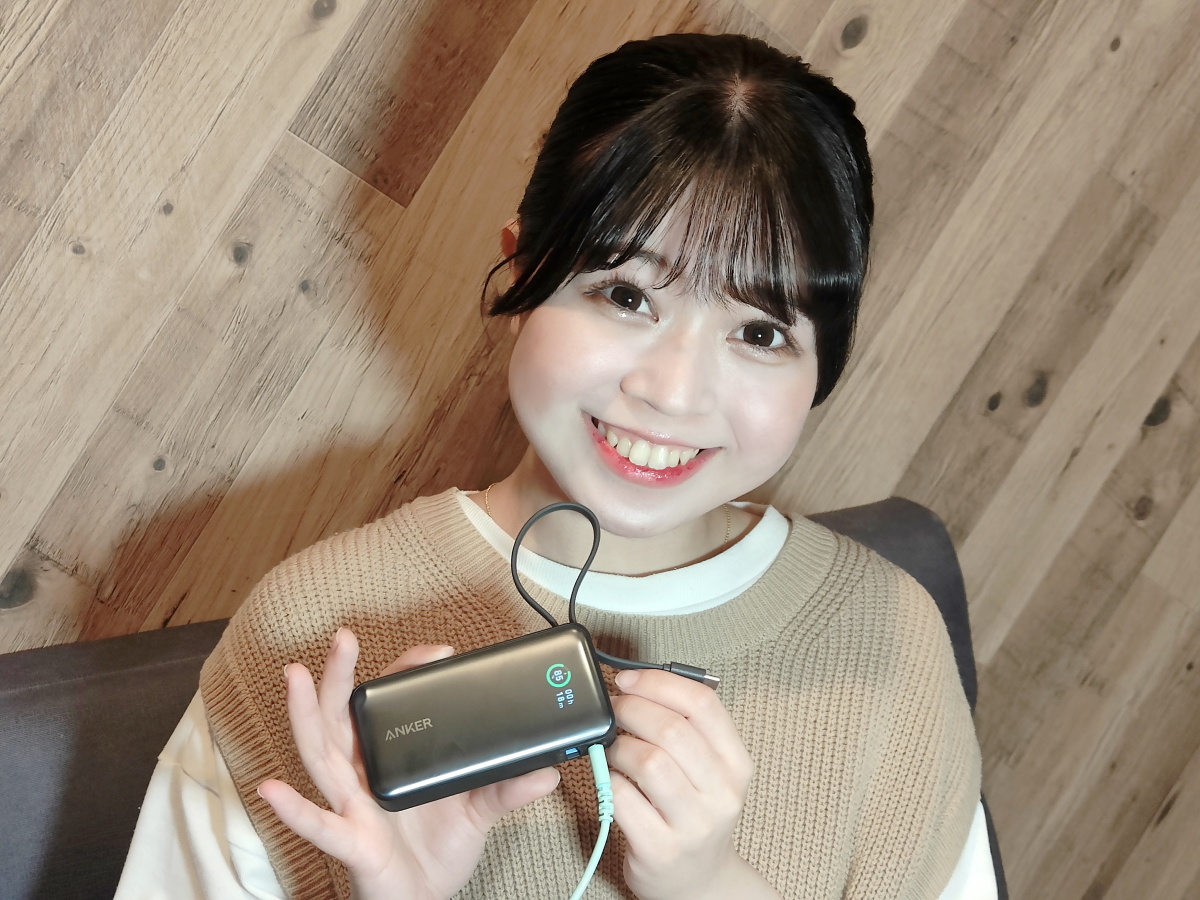 | 3台同時充電も可能な「Anker Nano Power Bank (30W, Built-In USB-C Cable)」を試す!モデル:長真由美(おさまゆみ)さん |