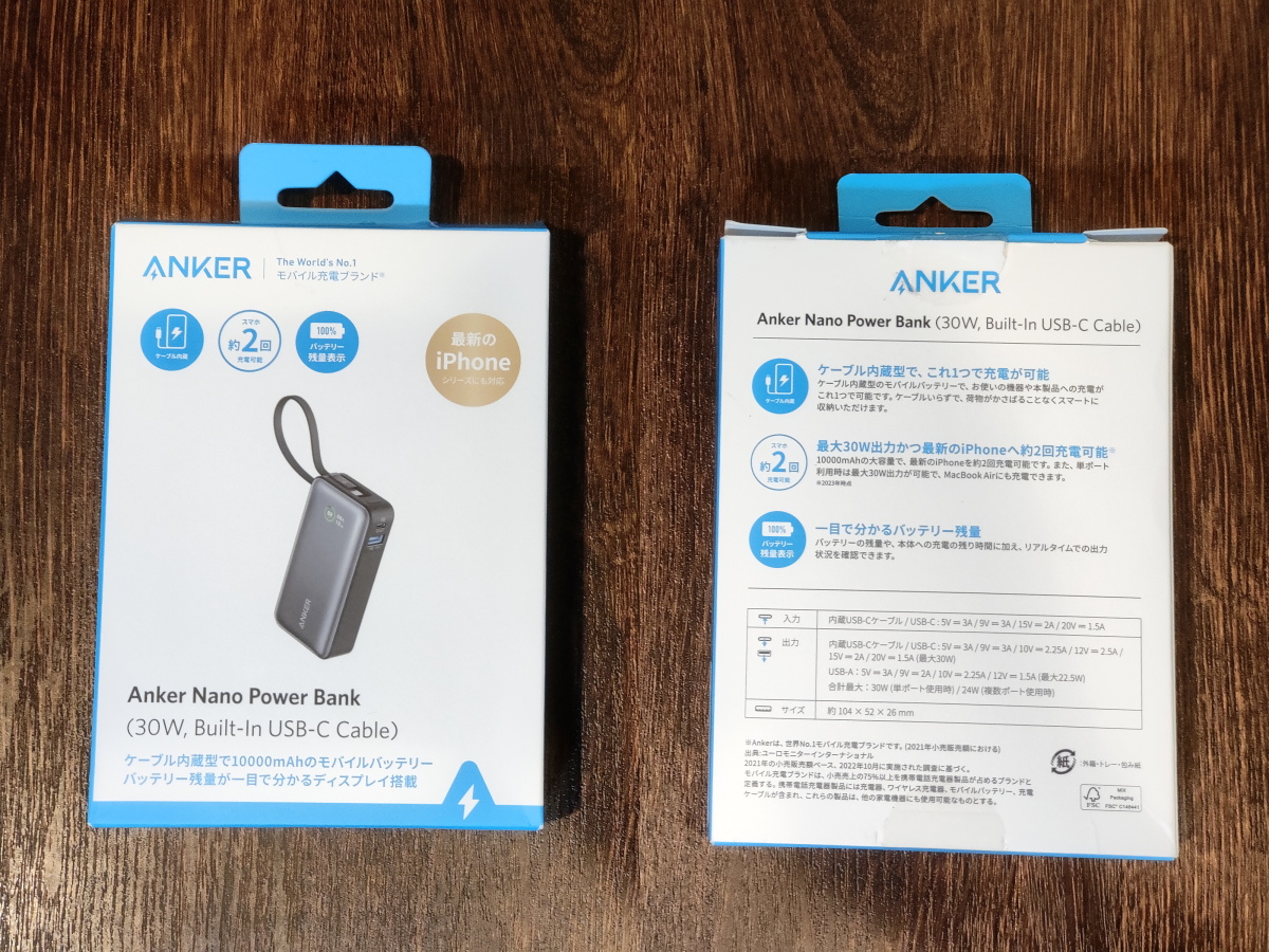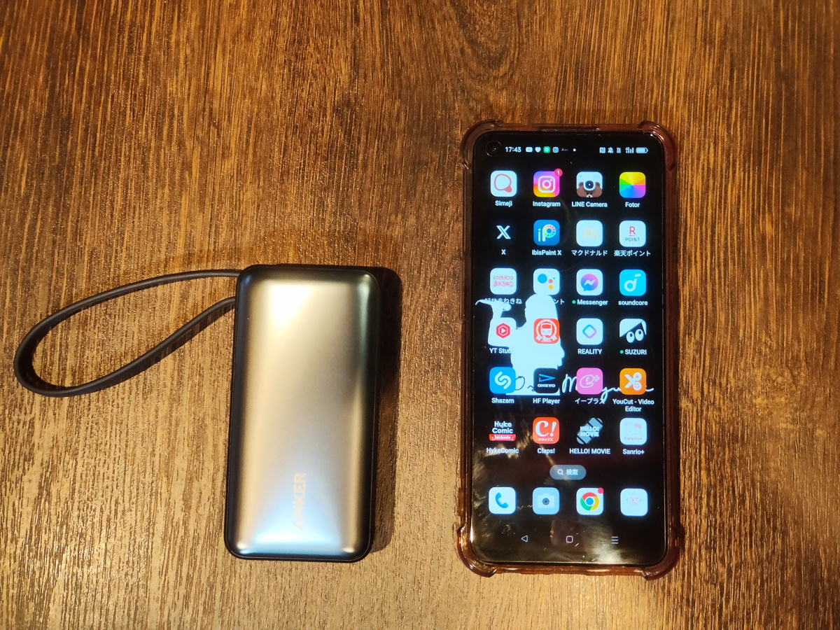 S-MAX:Anker Nano Power Bank(30W,Built-In USB-C Cable)を試す!USB A&Cポート+Type-Cケーブル付き、充電時間表示もできるモバイルバッテリー