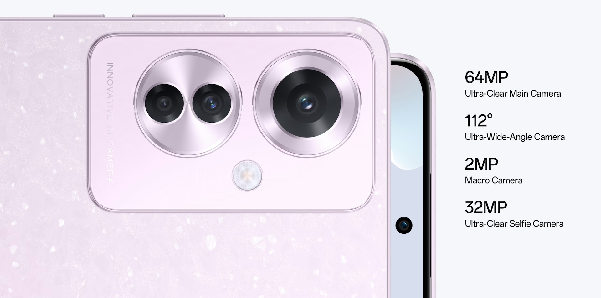 パンチホール部分には約3200万画素CMOS/広角レンズ(F2.4、画角90°、5Pレンズ)が内蔵されており、リアカメラ撮影に匹敵する高画質を実現してOPPO Reno Aシリーズにおいて最高のフロントカメラ性能へと進化しているほか、顔認証にも対応しています。また生体認証としては画面内指紋センサーも搭載。一方、リアカメラは以下のトリプル構成で、光と色が完璧にバランスが取れた細部まで正確に復元される超鮮明な写真撮影が実現されているほか、日常の一瞬を高精細に撮影できるウルトラワイド撮影やマクロ撮影などが行え、新たに4K画質の動画も撮影可能になっています。