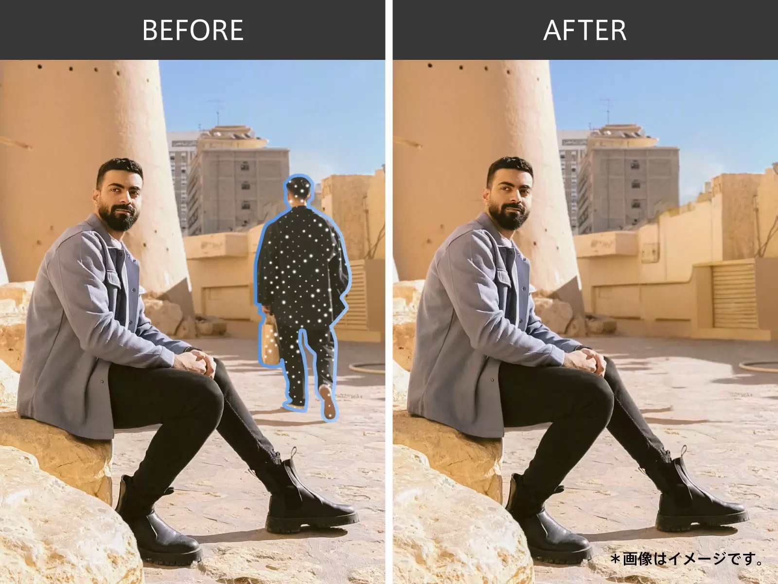 またポートレート撮影時には新たに2倍ズームに対応し、被写体の撮影に最適な画角で撮影可能で、さらにミドルレンジながらも生成AI機能を活用した写真編集機能を搭載することによってより多くの人に生成AIの体験を提供し、写真撮影だけでなく撮影後の編集も楽しめるようになりました。生成AIを活用したAI消しゴム機能はクラウドAIによる強力な計算能力によって複雑なタスクを効率よくこなせるようになるため、撮影時に入り込んだ不要な物を簡単に消去して消去した部分の背景をより綺麗に精度の高い画像処理を行うことで、より自然な写真に仕上げます。