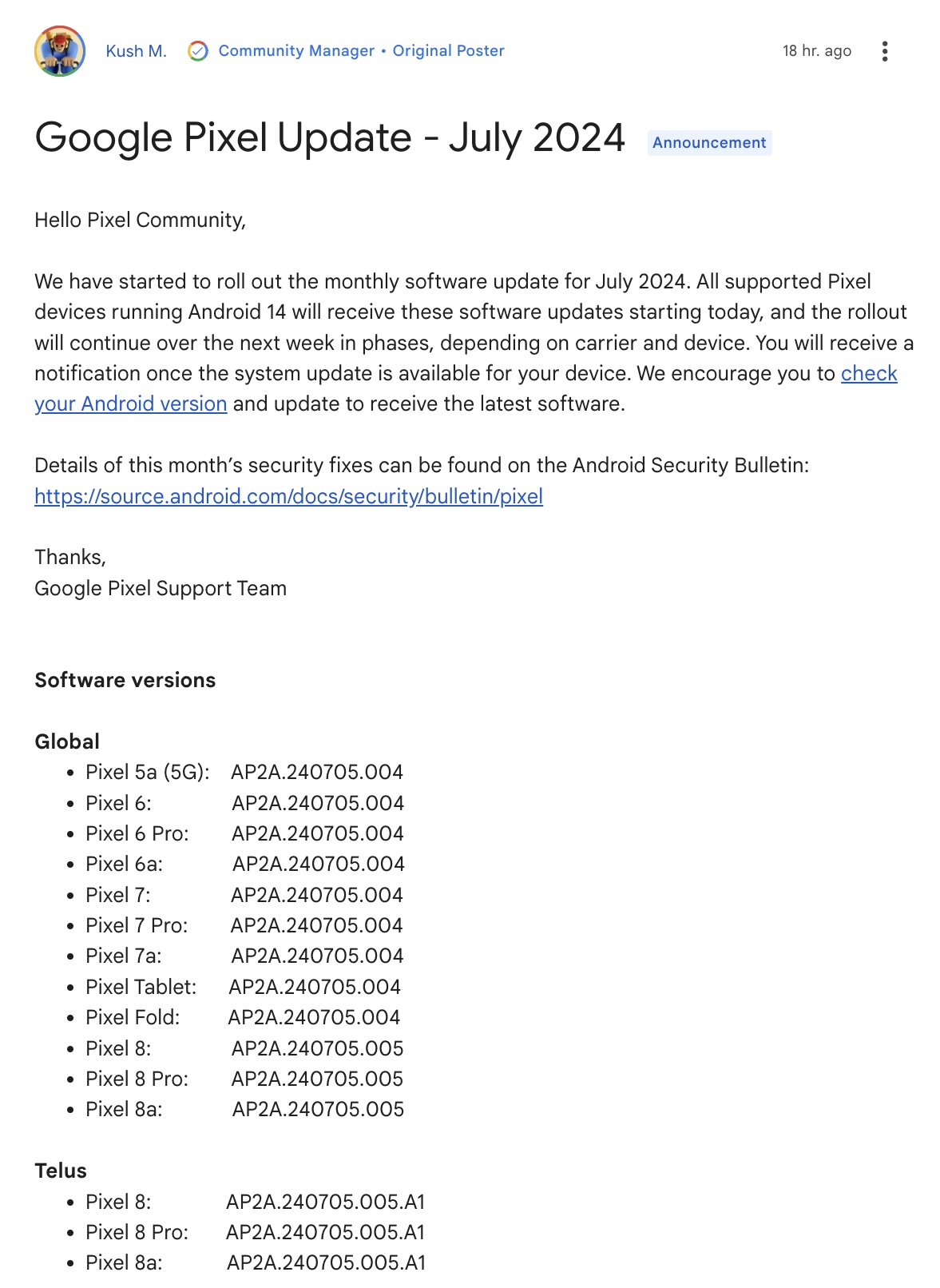 ・Google Pixel Update - July 2024 - Google Pixel Community