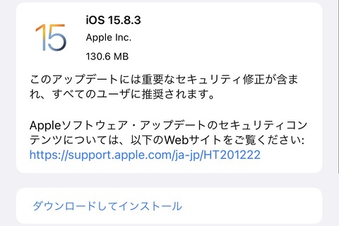 | AppleがiPhoneやiPadなど向けiOS 15.8.3とiPadOS 15.8.3をリリース! |