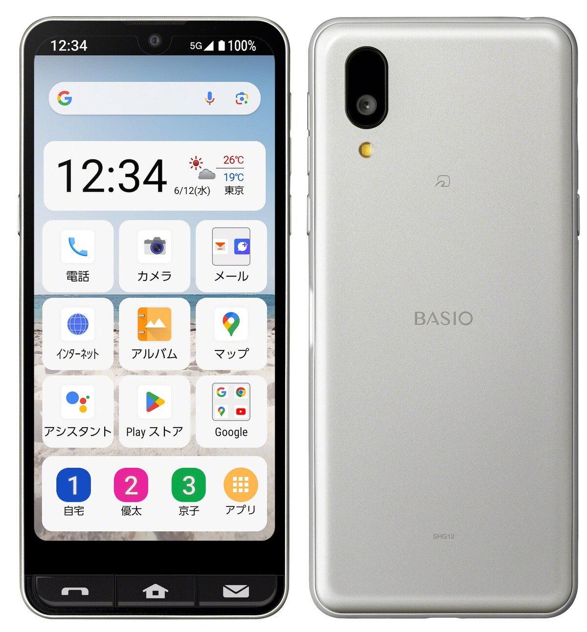 BASIO active2はKDDIグループのシニアなどのスマホ初心者向け「BASIO」シリーズとして2023年3月に発売された前機種「BASIO active(型番:SHG09)」に続く最新機種で、引き続いて画面の下にホームキーや電話キー、メールキーといった大きく押しやすい物理フロントキーを搭載してスマホ初心者でも押し間違いしにくいようになっているほか、キーが光って電話やメールをお知らせしてくれるようになっています。