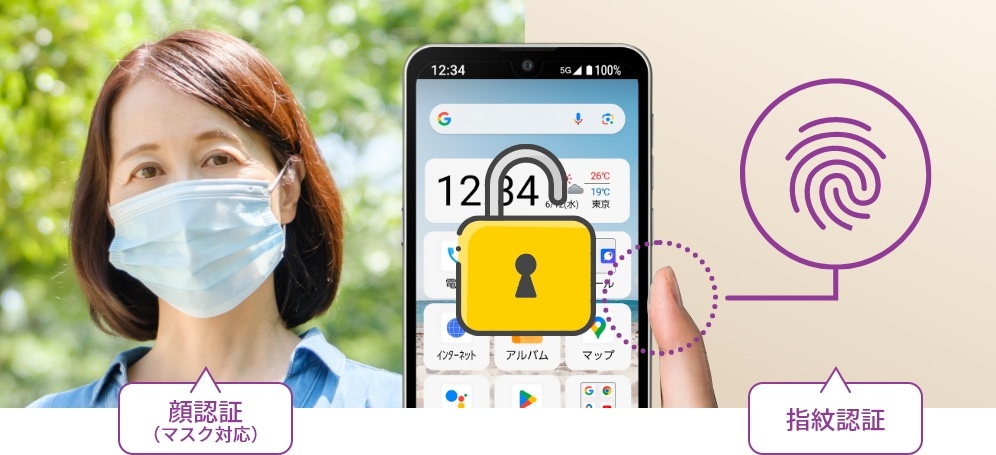 またパンチホール部分には約800万画素CMOS/広角レンズ(F2.0)のフロントカメラが内蔵され、生体認証として顔認証に対応するほか、本体右側面に指紋センサーも搭載しており、マスクをしたままでも指紋でさっとロック解除できるようになっています。またディスプレイはリッチカラーテクノロジーモバイルやアウトドアビュー、リラックスビューにも対応しています。サイズは約158×71×9.4mm、質量は約174g、本体色はJ:COM MOBILEではシルバーの1色のみ。