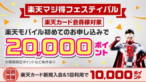 <【楽天カード会員様限定】楽天モバイル初めて申し込み&開通特典>