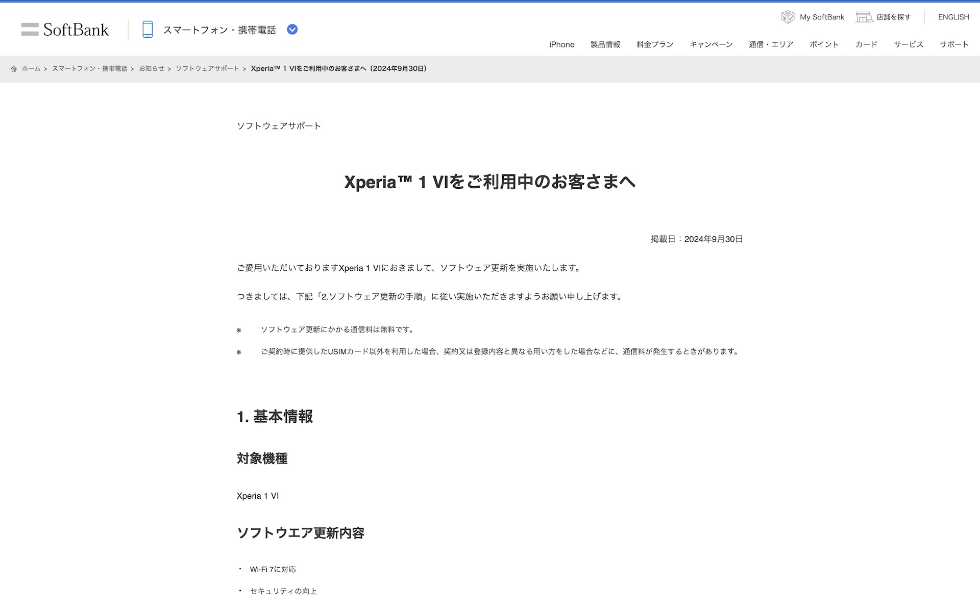 ・Xperia 1 VIをご利用中のお客さまへ(2024年9月30日) | スマートフォン・携帯電話 | ソフトバンク