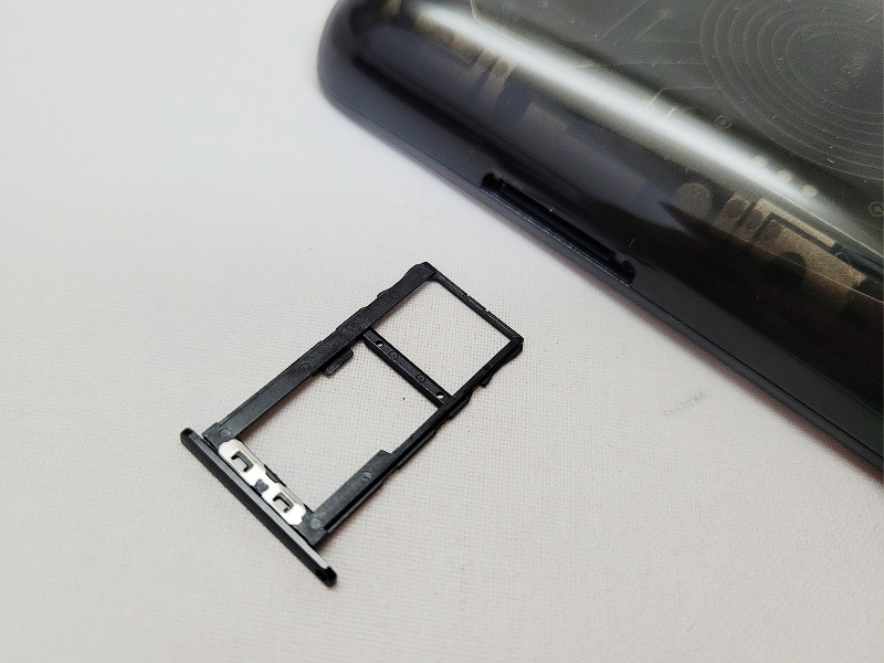 プログラマブルキーとは好きな機能やアプリを登録できるカスタムキーで、単押し・長押し・二度押しの押し方で個別に機能を最大3種類まで登録することができます。SIMカードはnanoSIM(4FF)に対応したスロットが2つありDSDV(Dual Sim Dual VoLTE)に対応しており、その内、第2スロットがmicroSDカード(最大1TBまで対応)との排他利用の設計になっています。