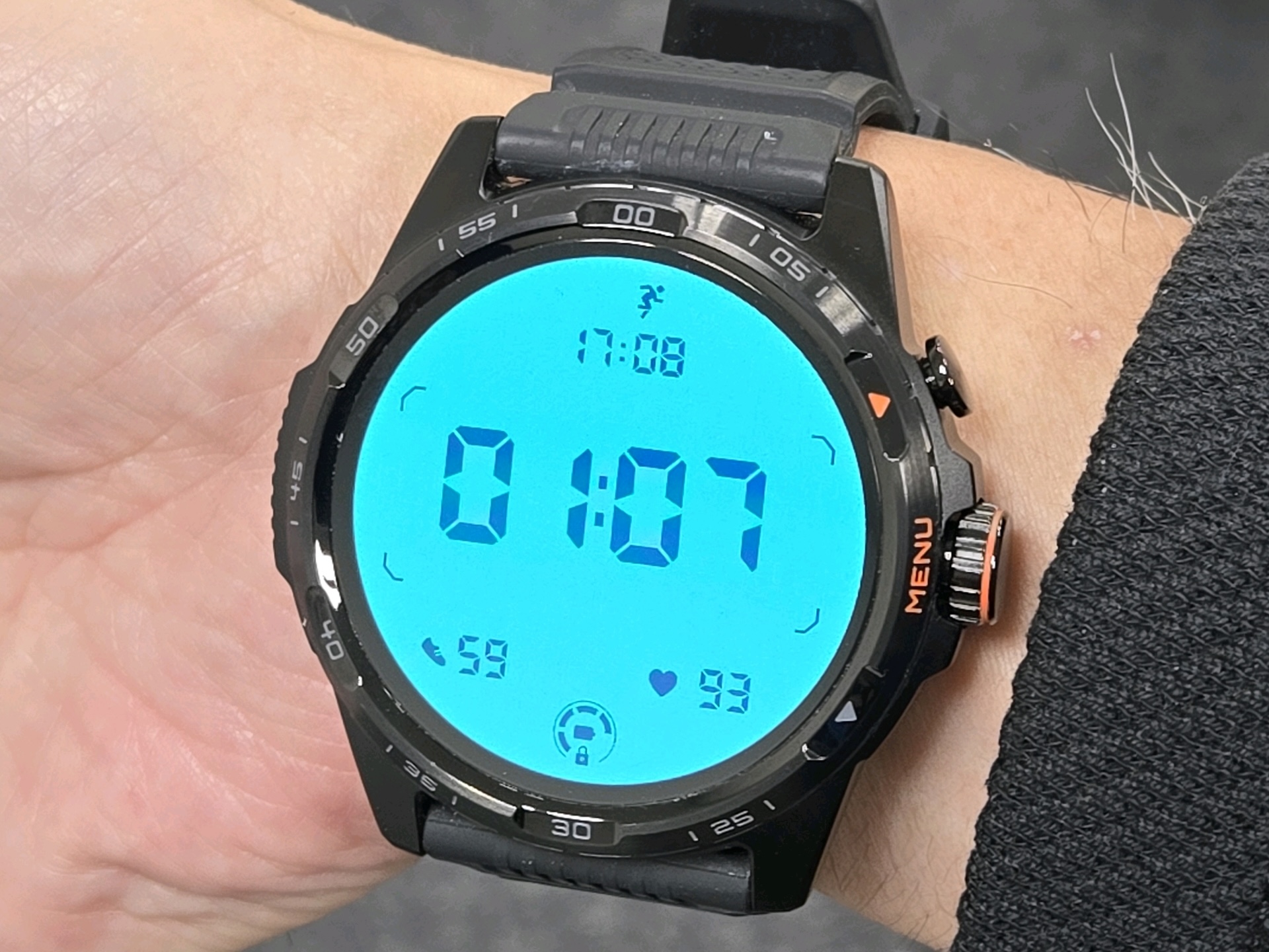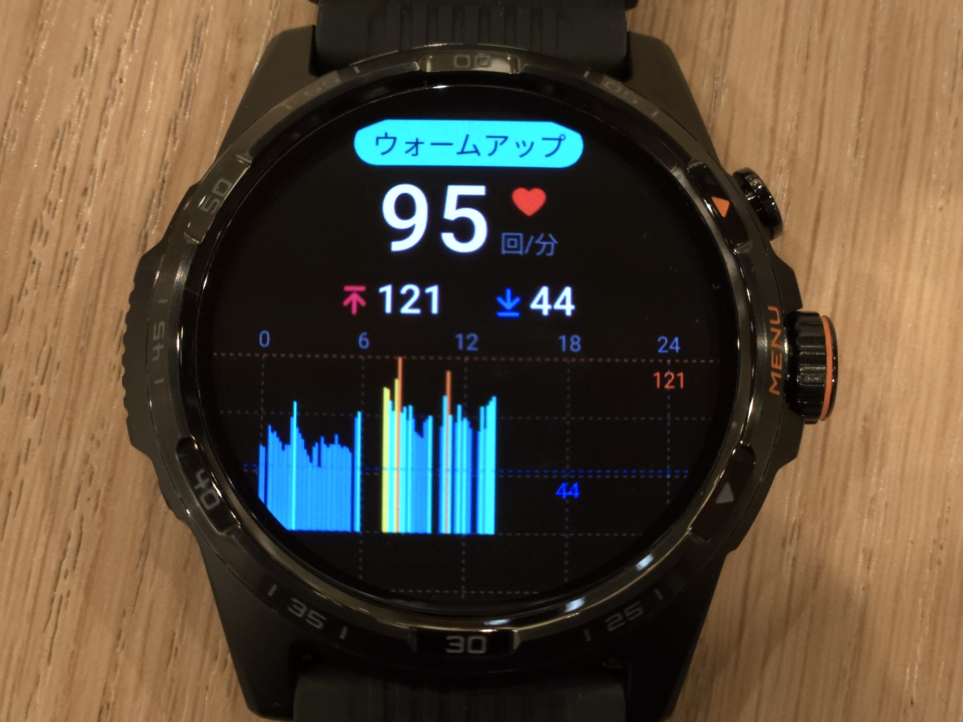 特に5ATM(5気圧防水)によるオープンウォータースイミングに対応しているだけでなく、アメリカ国防総省の調達基準となる規格「MIL-STD-810H」に準拠した耐熱性・耐衝撃性・耐水性・防塵性・防湿性にも対応しており、スマートウォッチとしては珍しいタフネス仕様となっているため、まさに登山やアウトドアなどでの利用にも最適となっています。またバンドはフッ素ゴム(フルオロエラストマー)による24mmを採用しています。