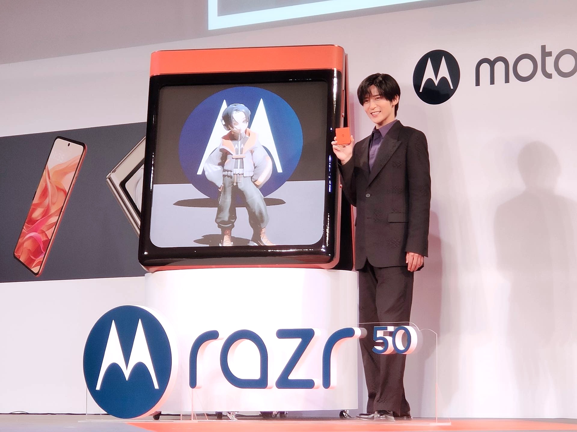 今回はモトローラが発売に先立って2024年9月17日(火)に都内にて開催した「新製品記者説明会/新製品・新ブランドアンバサダー発表会」において実際にmotorola razr 50およびmotorola razr 50sの展示機をタッチ&トライしてきましたので主に外観や基本機能を中心に写真や動画で紹介したいと思います。なお、motorola razr 50およびmotorola razr 50sのアンバサダーにはアイドルグループ「Snow Man」の目黒 蓮さんが就任しており、motorola razr 50 AIBOUアバター CM出演キャンペーンで生成したAIアバターが2024年12月下旬よりテレビCMで共演する予定となっています。