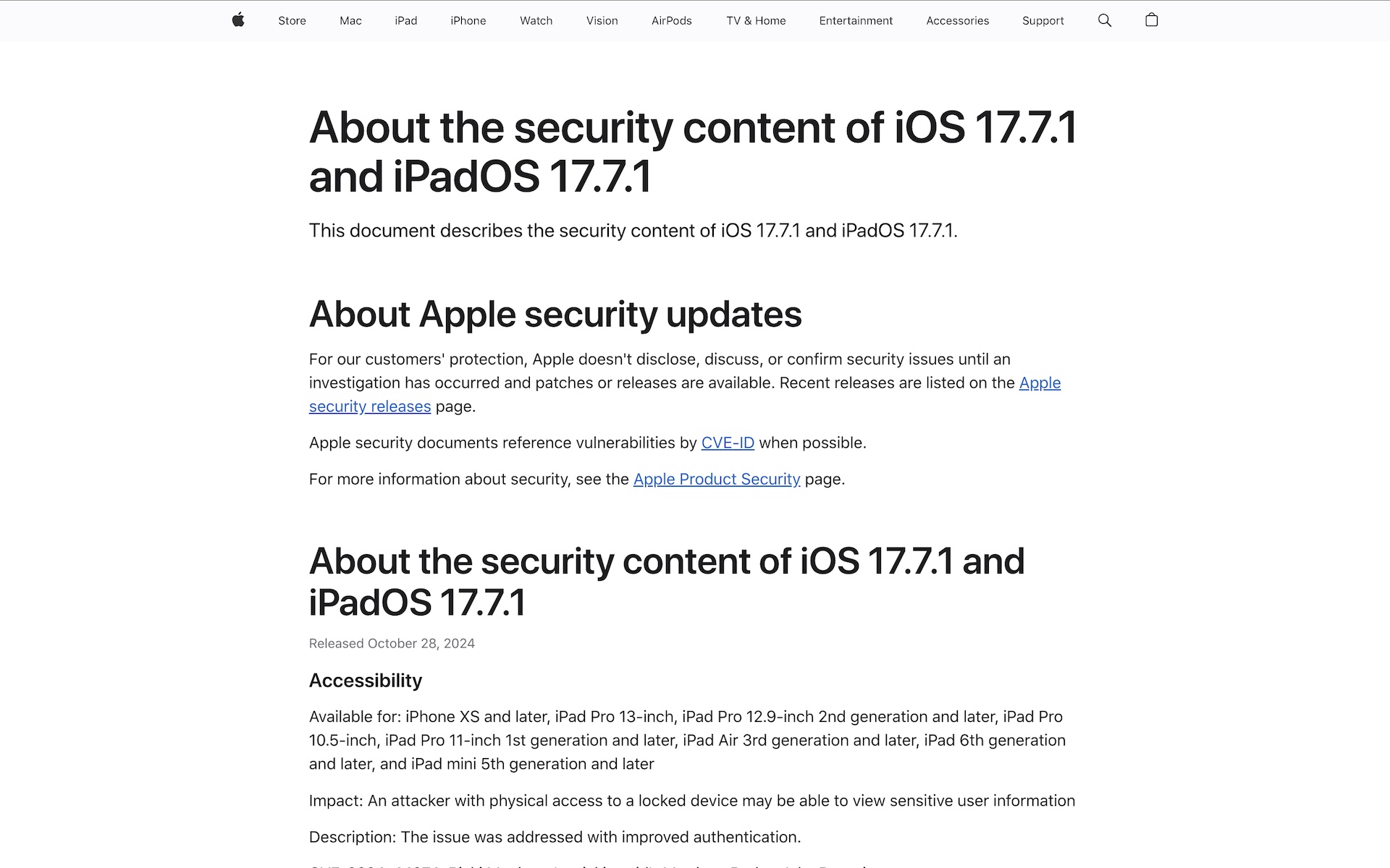 About the security content of iOS 17.7.1 and iPadOS 17.7.1