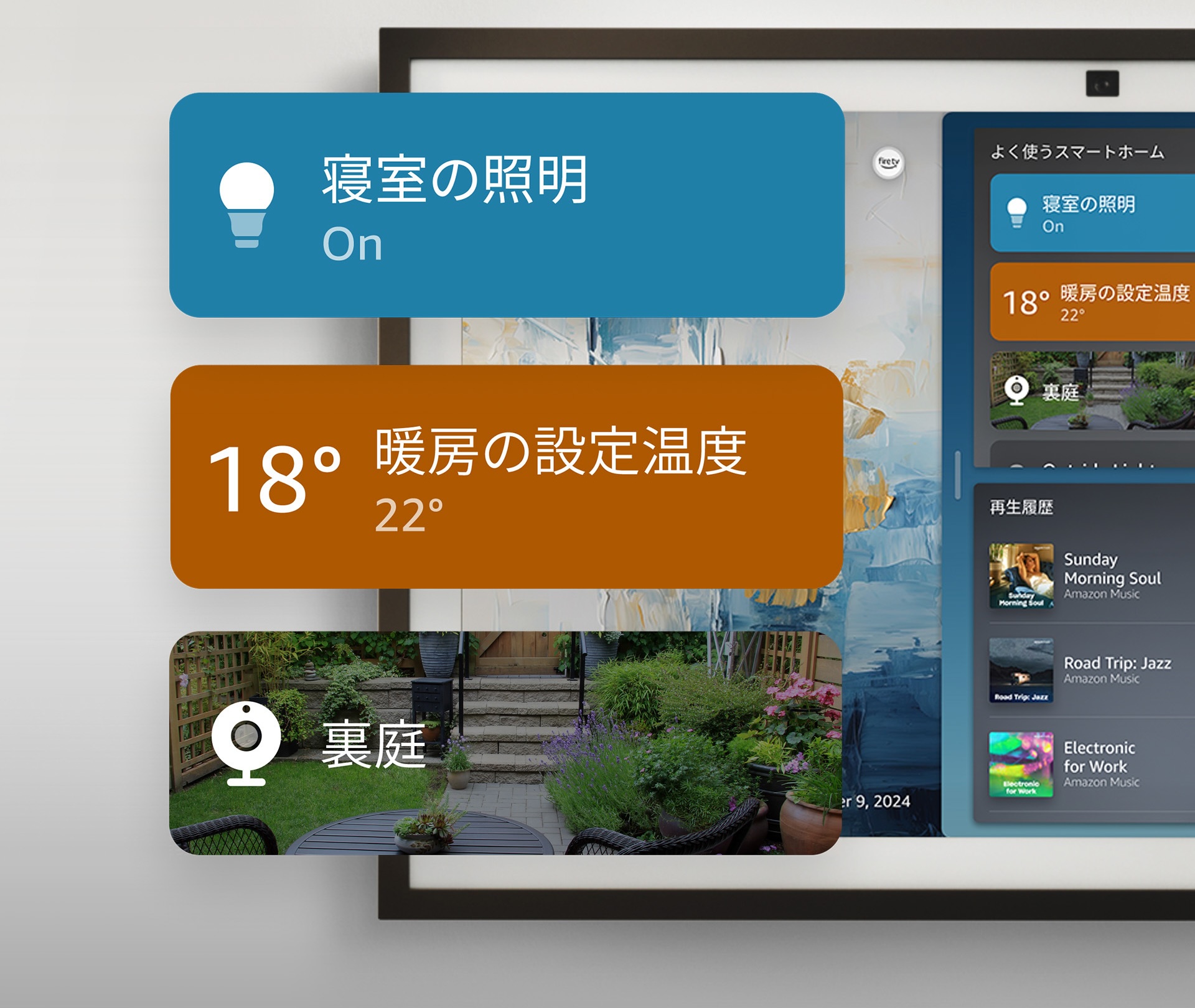 スマートホーム連携も強化され、Wi-FiやThread、Zigbeeをサポートするほか、Matterコントローラーとしても機能するため、照明やセキュリティーカメラ、スマートプラグ、エアコンなどの対応するスマートホーム製品を音声で手軽に操作することができ、家中にあるすべてのAlexaに対応した照明のオン/オフやカメラの映像の表示などといったさまざまな操作を簡単に行えます