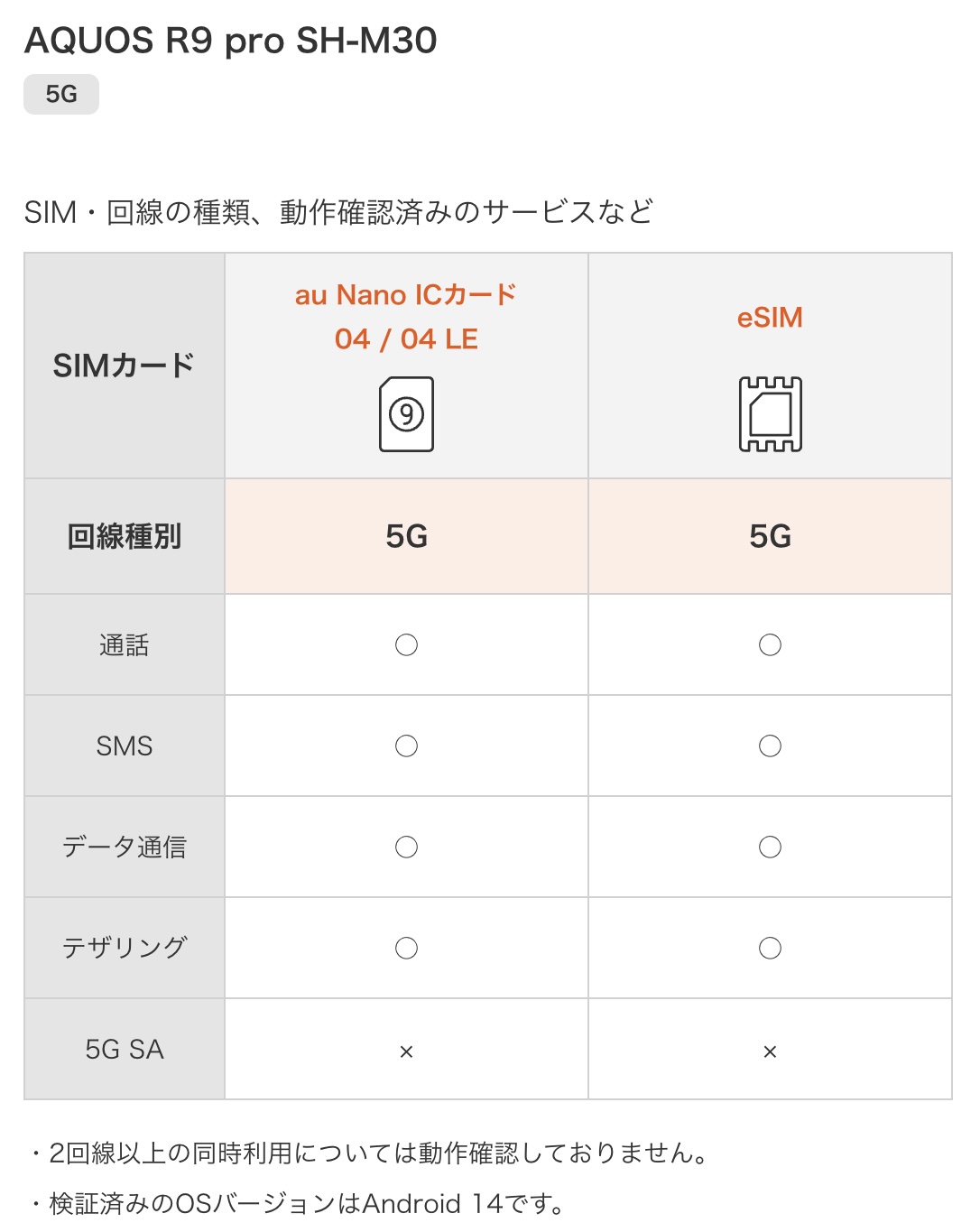 ・動作確認端末一覧 | SIM(au ICカード/eSIM) | au