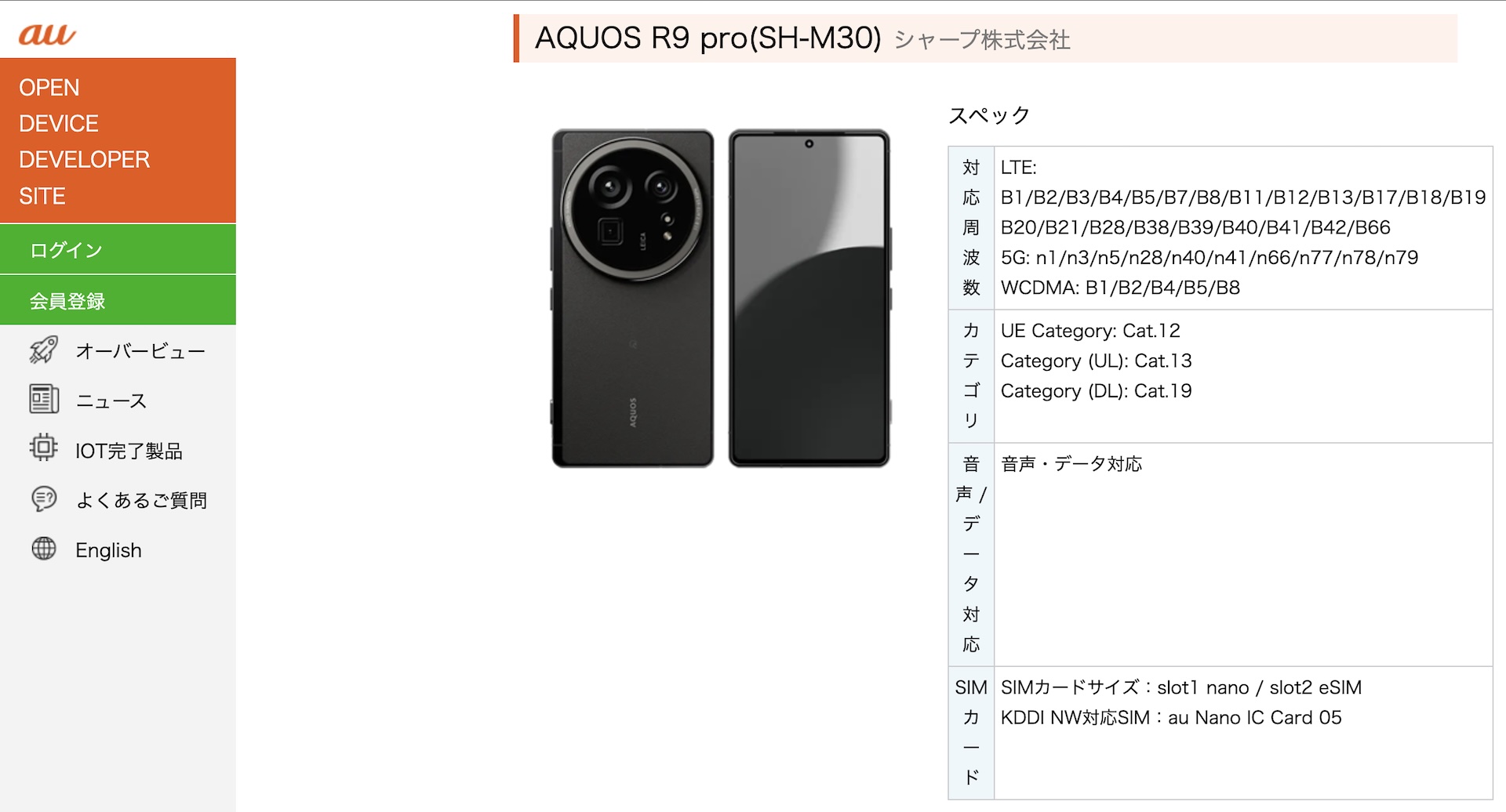 KDDIは13日、同社が提供している携帯電話サービス「au」および「UQ mobile」、「povo」や仮想移動体通信事業者(MVNO)が提供するau回線を用いた携帯電話サービスなどのau回線で利用できる相互接続性試験(IOT)をクリアしたIOT完了製品に新たにシャープが販売する5G対応フラッグシップスマートフォン(スマホ)「AQUOS R9 pro」の日本におけるオープン市場向けメーカー版(いわゆる「SIMフリーモデル」)「AQUOS R9 pro(型番:SH-M230)」を追加しています。