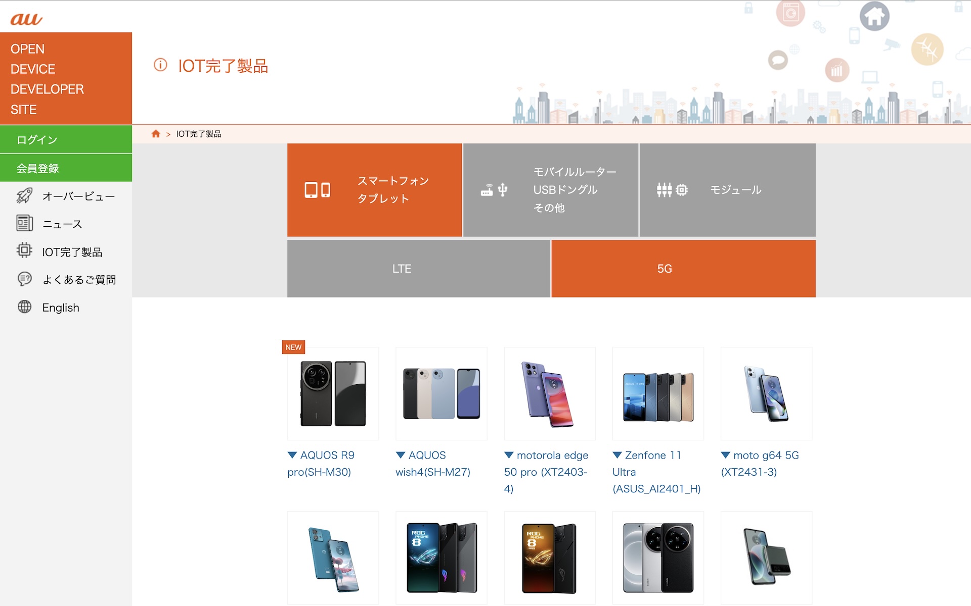 ・IOT完了製品 | au OPEN DEVICE DEVELOPER SITE