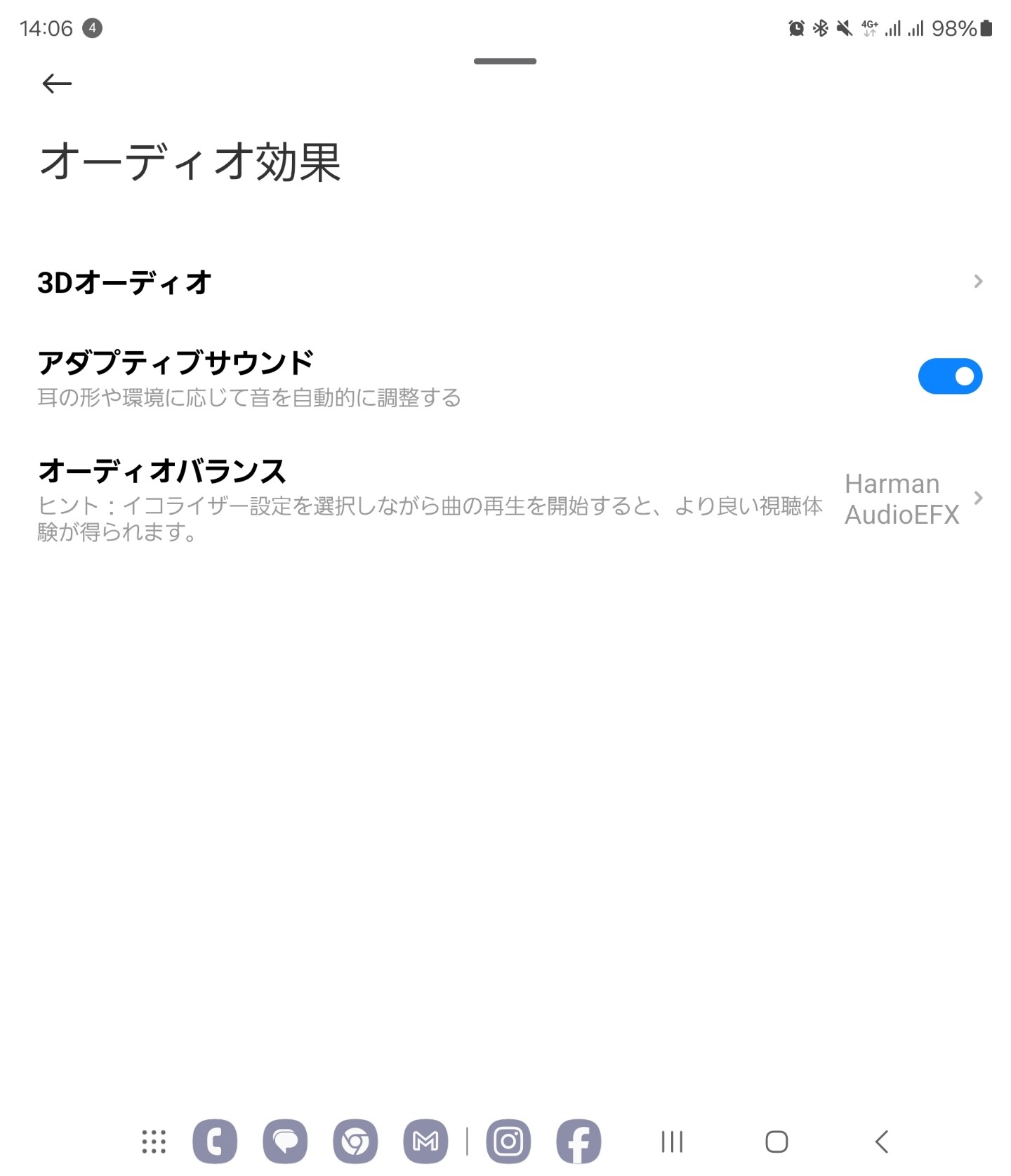 またイコライザーとして「Harman AudioEFX」を搭載しており、内蔵3Dオーディオとの組み合わせで空間が広がる音楽再生となります。3Dオーディオは内蔵のセンサーで頭部の位置を特定してトラッキングも可能です。なお、イコライザーはHarman AudioEFX以外にプリセットイコライザーが用意されています。