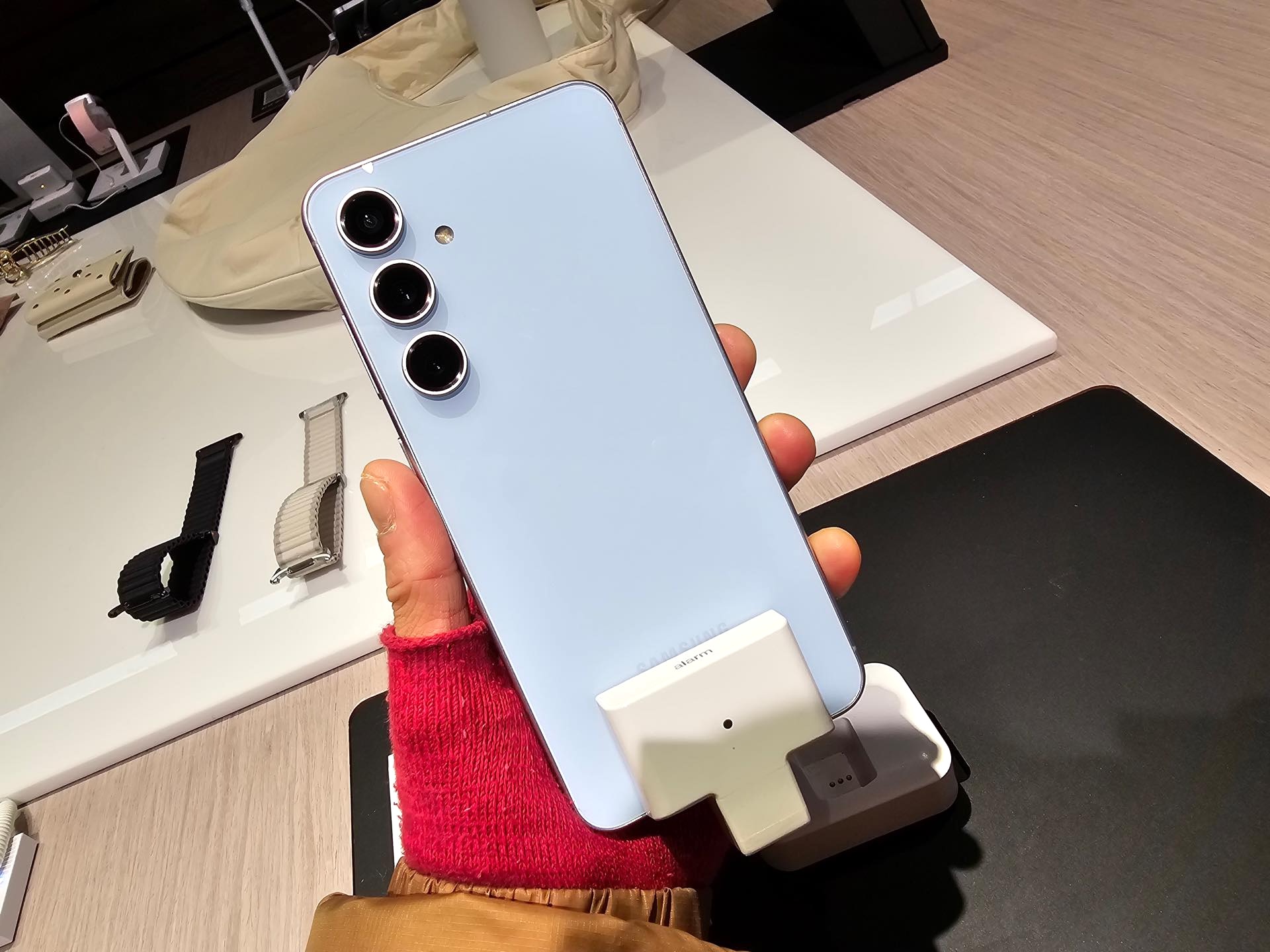 なお、メーカー版およびau版はハードウェアは共通となっており、本体色はau版がブルーおよびグラファイト、グレーの3色展開、メーカー版はこれらの3色に加えてSamsungオンラインショップ限定カラーとしてミントを追加した4色展開となっており、有償サポート「Galaxy Care」の対象機種で加入した場合には水没破損や落下などによる画面割れ、故障や盗難時に無料もしくはわずかな負担金で修理・交換が可能です。今回はそんなGalaxy S24 FEについて外観などを中心に写真を交えて紹介します。