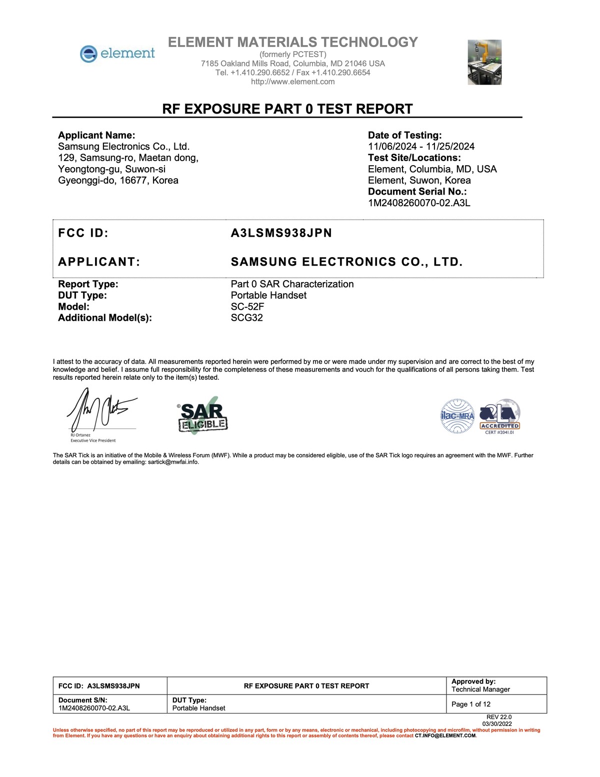 ・A3LSMS938JPN | OET List Exhibits Report | FCC