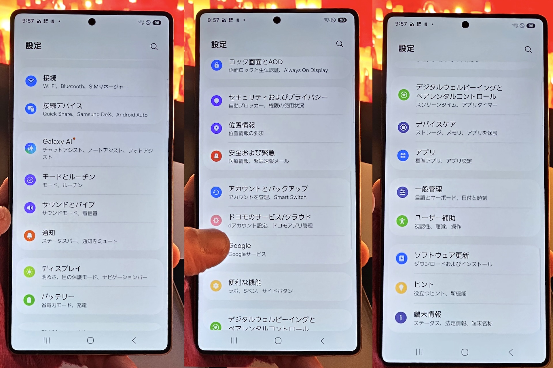 | 画面 | 6.9型1440×3120ドット Dynamic LTPO AMOLED 2X | 6.8型1440×3120ドット Dynamic LTPO AMOLED 2X | 6.8型1440×3088ドット Dynamic AMOLED 2X | |