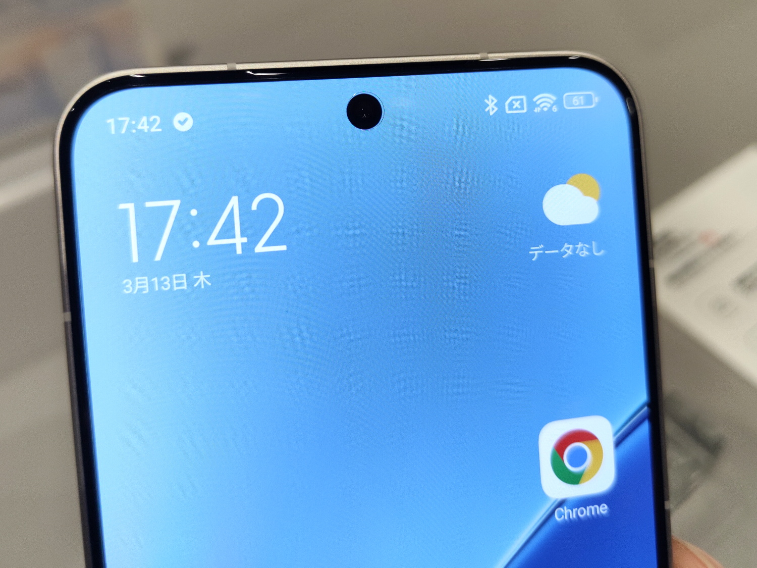 フロントカメラは、画面上部のパンチホールに搭載されている。約3200万画素、F値2.0、21mm相当の焦点距離90°FOVの広角カメラとなっている。