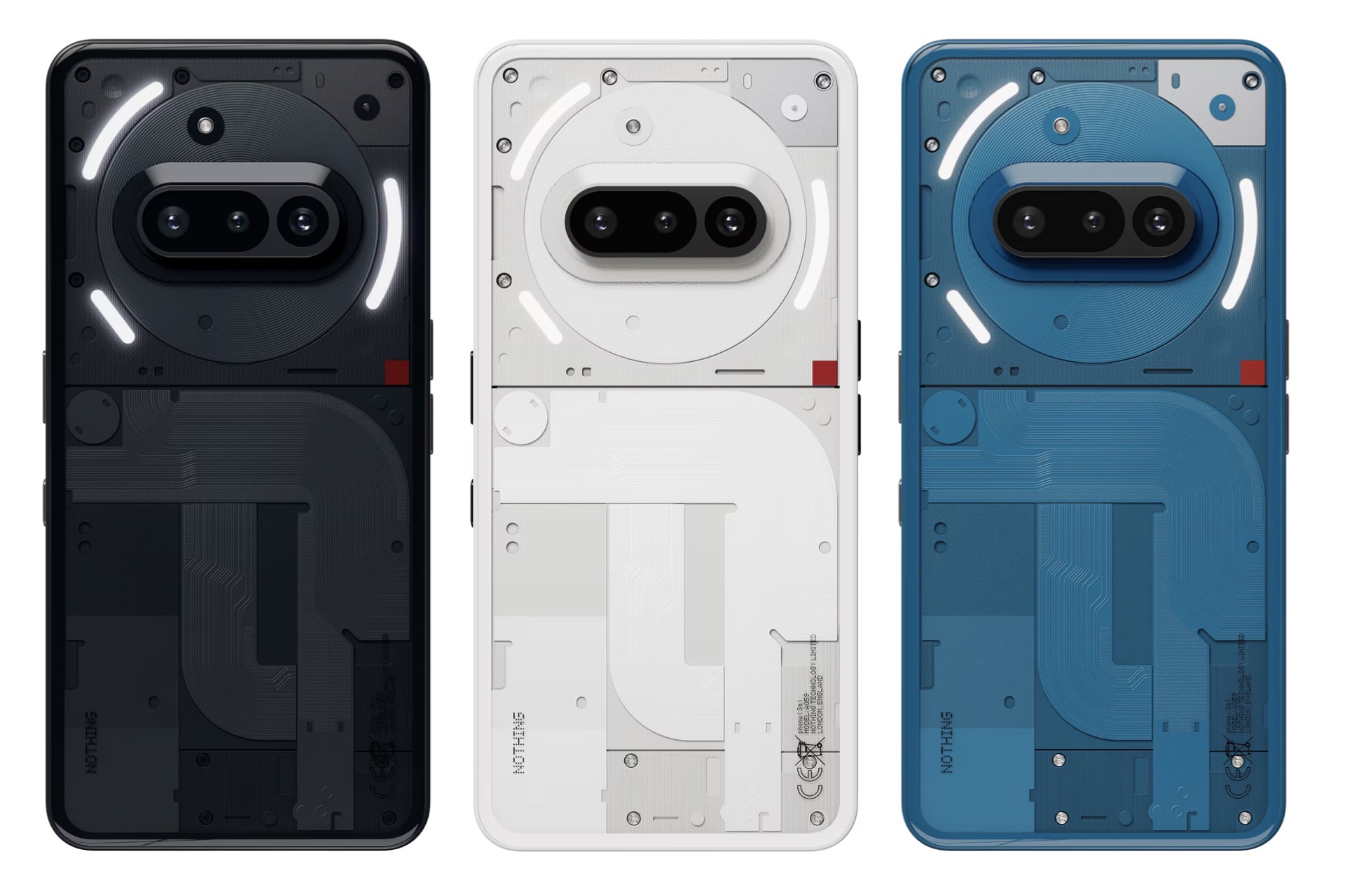 外観は前機種「Nothing Phone (2a)」や「Nothing Phone (2a) Plus」をベースにしており、柔らかな曲線が美しいデザインを装い、高級感を感じさせる質感で象徴的な左右対称性が歪むようなデザインによって透明でダイナミックかつ斬新な演出を加える一方、ガラス製の背面パネルがアップグレードされ、内部構造の対称性が強化されて全体の剛性と耐久性も高め、本体色にはブラックおよびホワイト、ブルーの3色がラインナップされています。