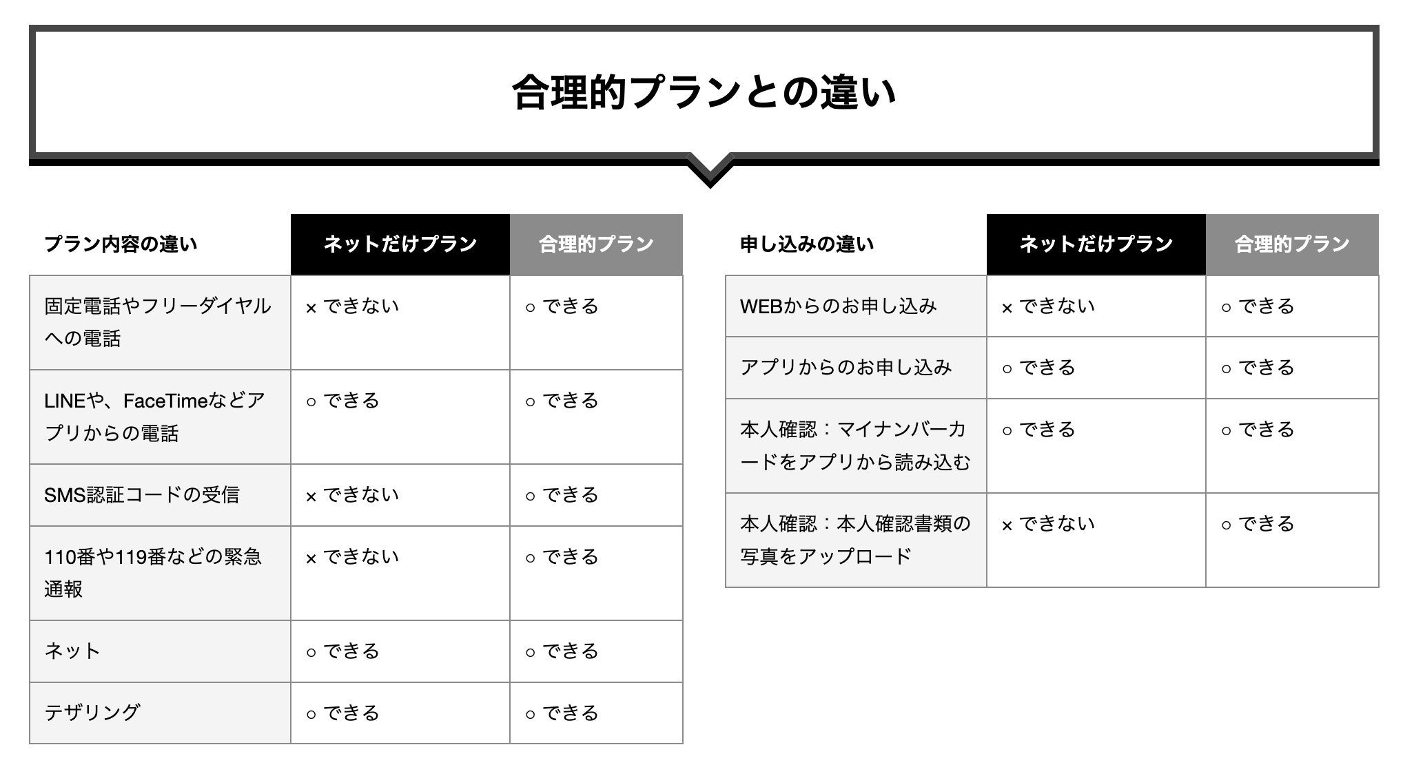 しかしながら、同社では携帯電話番号などの音声通話機能を備えたSIMを電話番号を使えないデータ端末で使用するのは、その機能を活かせずに「なんかもったいない」という使い方になってしまうとし、こうした背景を受けて普段使いのスマホ向け合理的プランとは異なり、タブレットでの利用を想定したデータ通信専用のネットだけプランを提供開始することにしたということです。