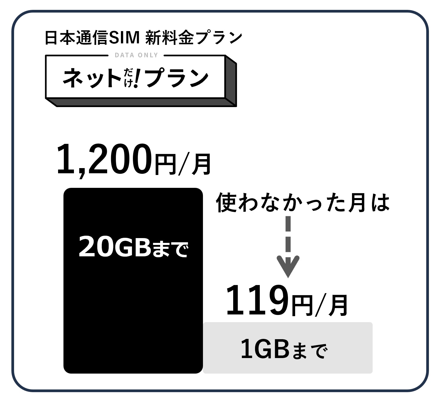 ・日本通信、20ギガで月額1,200円の「ネットだけプラン」が新登場 ― 使わなかった月は自動的に安くなる ―|日本通信 ニュース・お知らせ